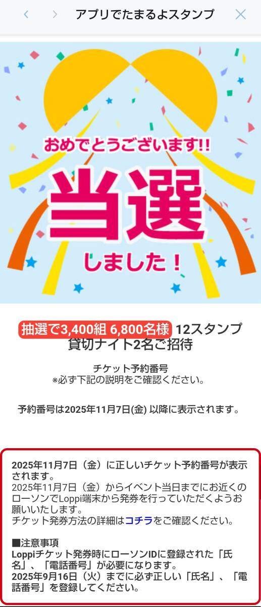 2025年11月7日(金)以降にLoppi発券用の「予約番号」と当方の氏名電話番号をご案内しますので