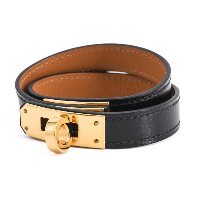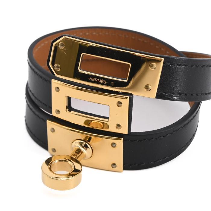 【美品】HERMES エルメス ケリー ブレスレット ドゥブルトゥール BOXカーフ レザー ブラック 黒 ゴールド金具 #B