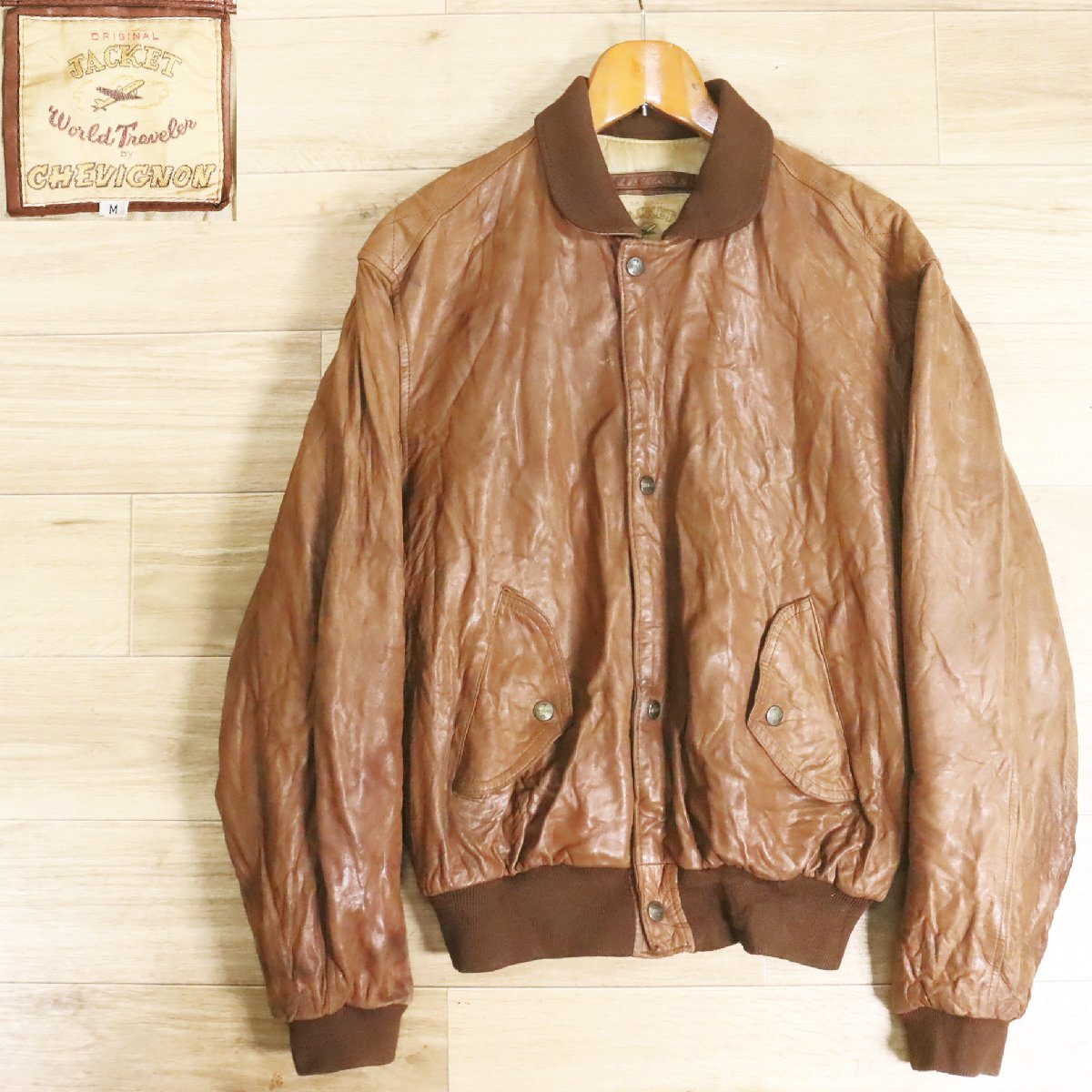 =4K/Y6.23-5 フランス製 CHEVIGNON シェビニオン レザーフライトジャケット レザージャケット 本革 ボンバージャケット M