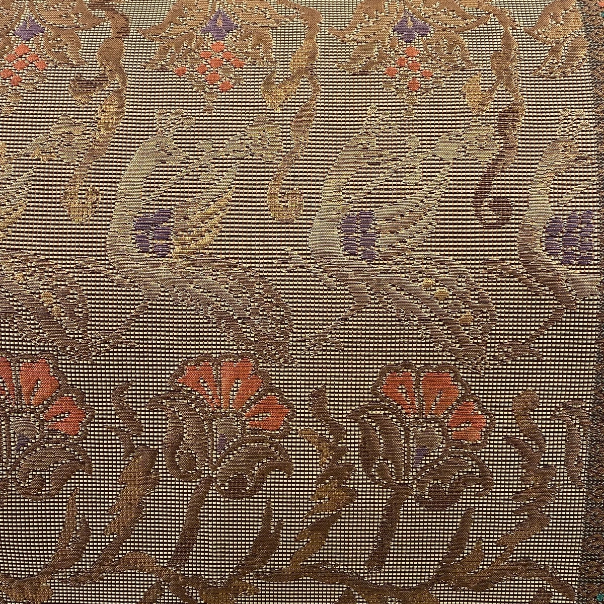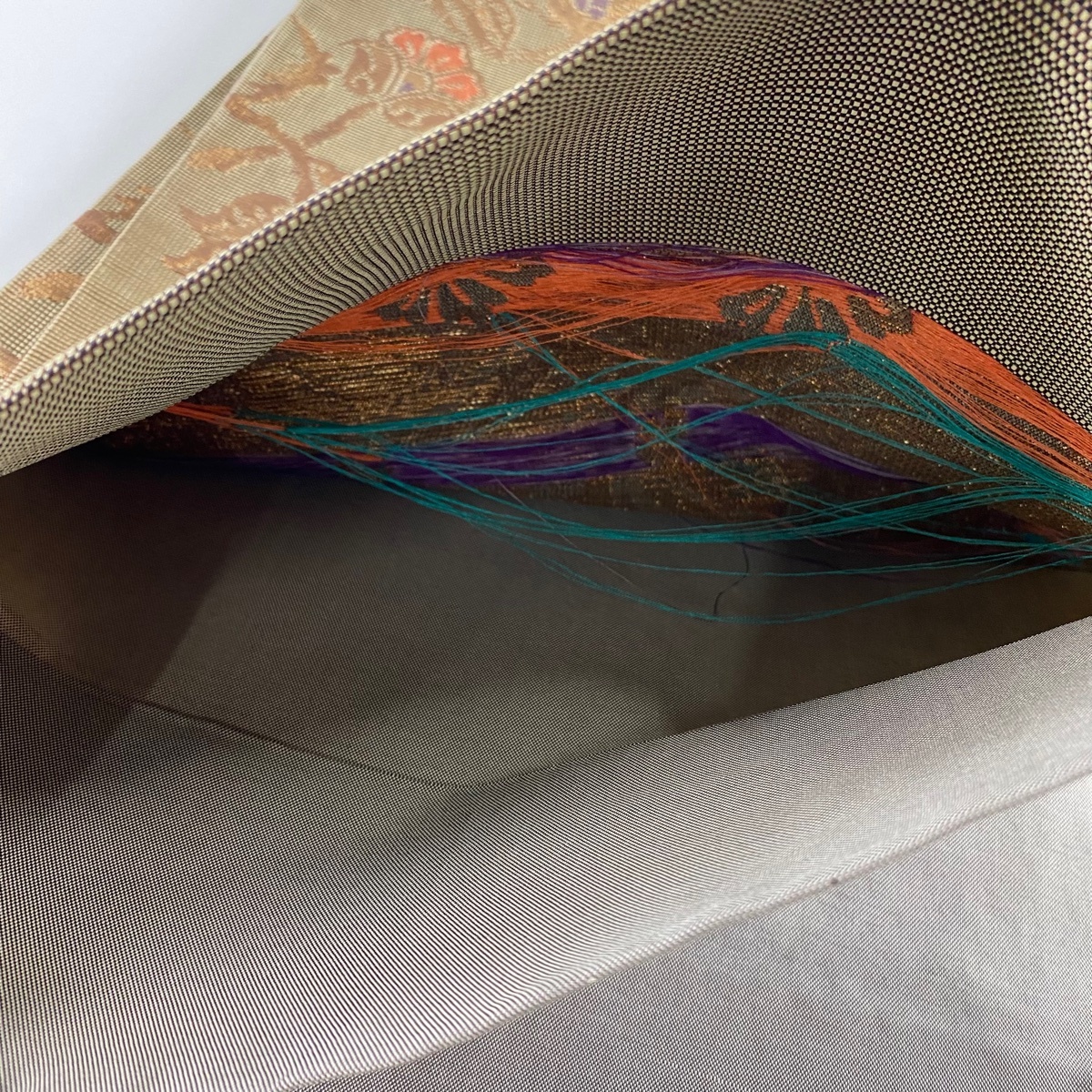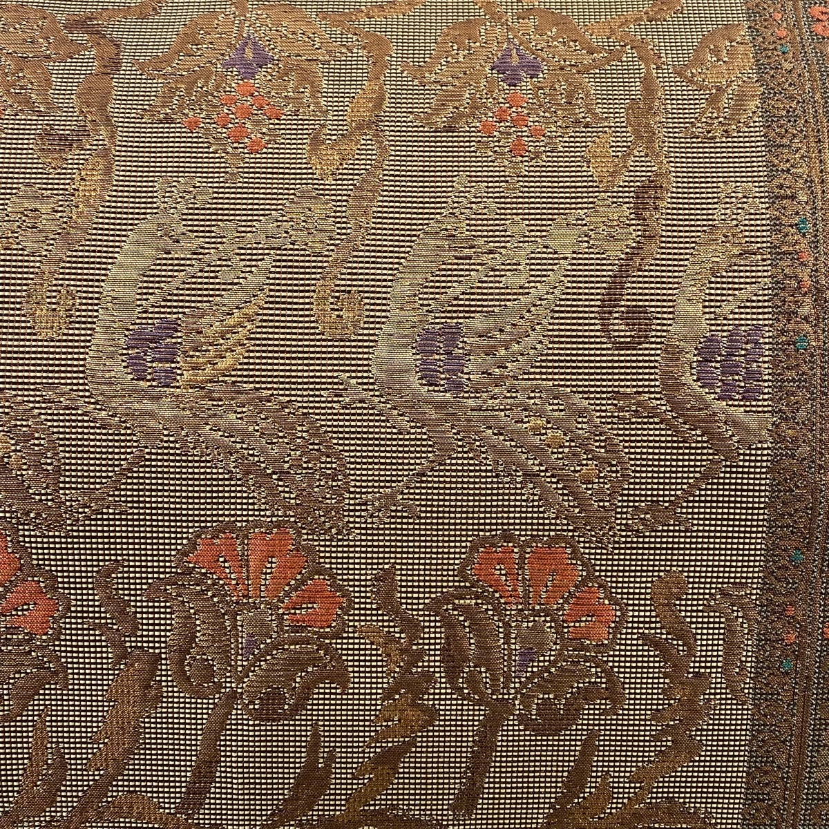 | 袋帯 秀品 鳥 草花 箔 金糸 茶色 六通 正絹 【中古】 |