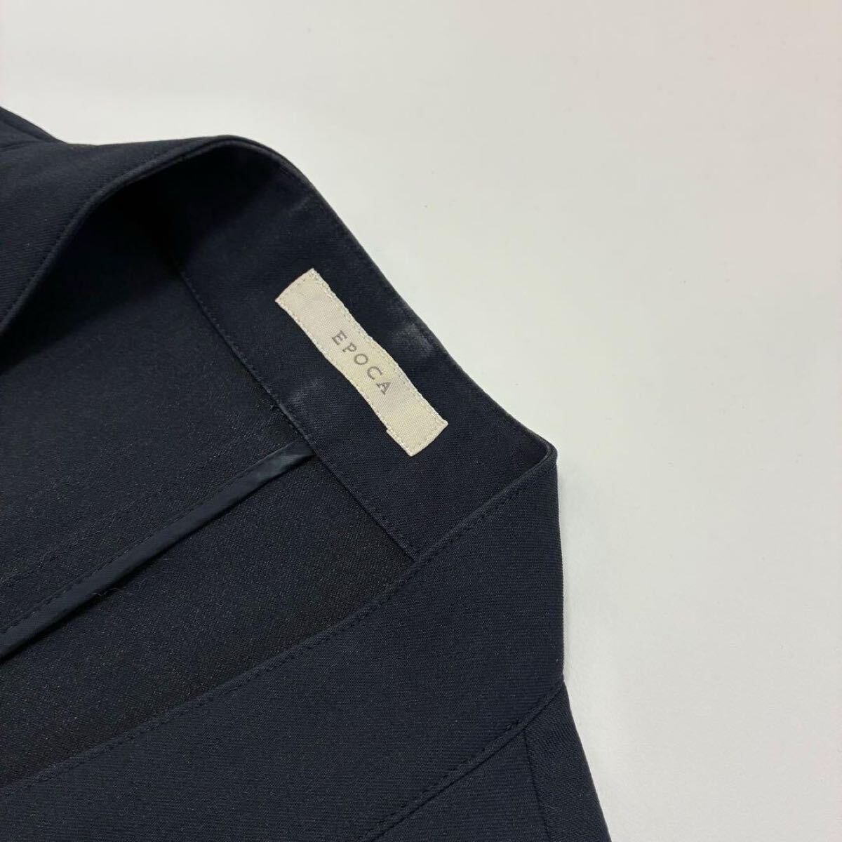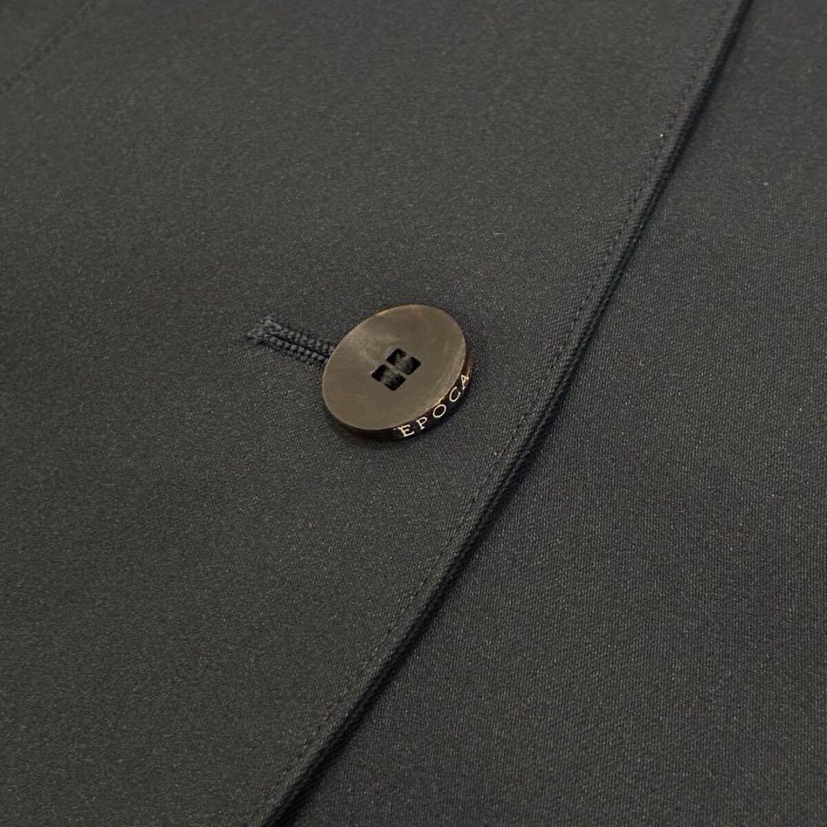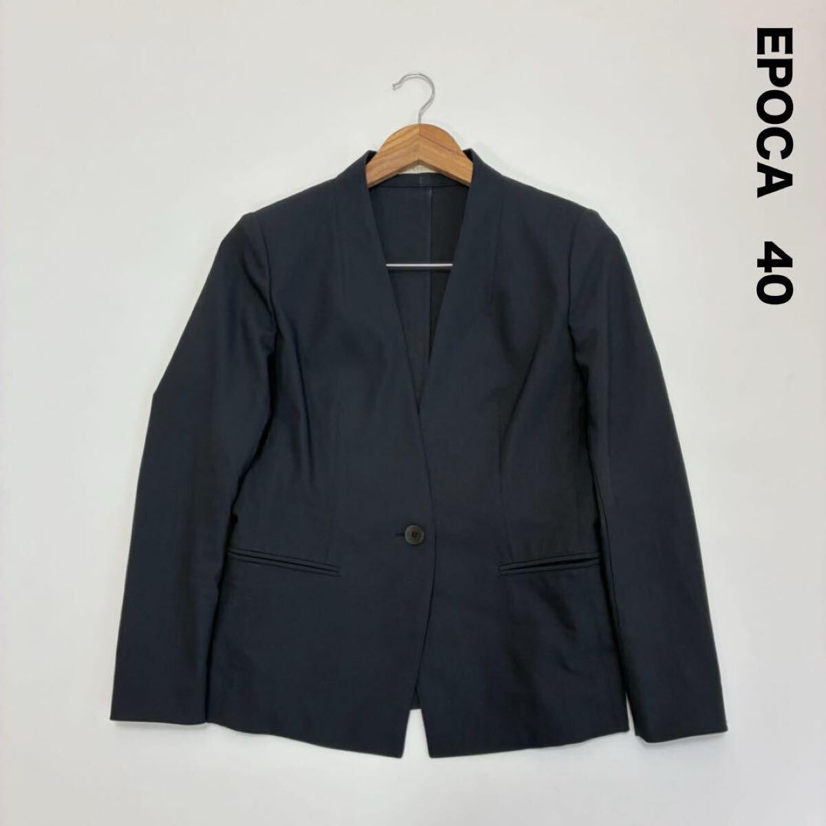 リネンの涼やかさと、エポカならではの美しい仕立てが融合したノーカラージャケット。すっきりと開いたVネックラインが、顔まわりをシャープに見せ、品のある印象に。