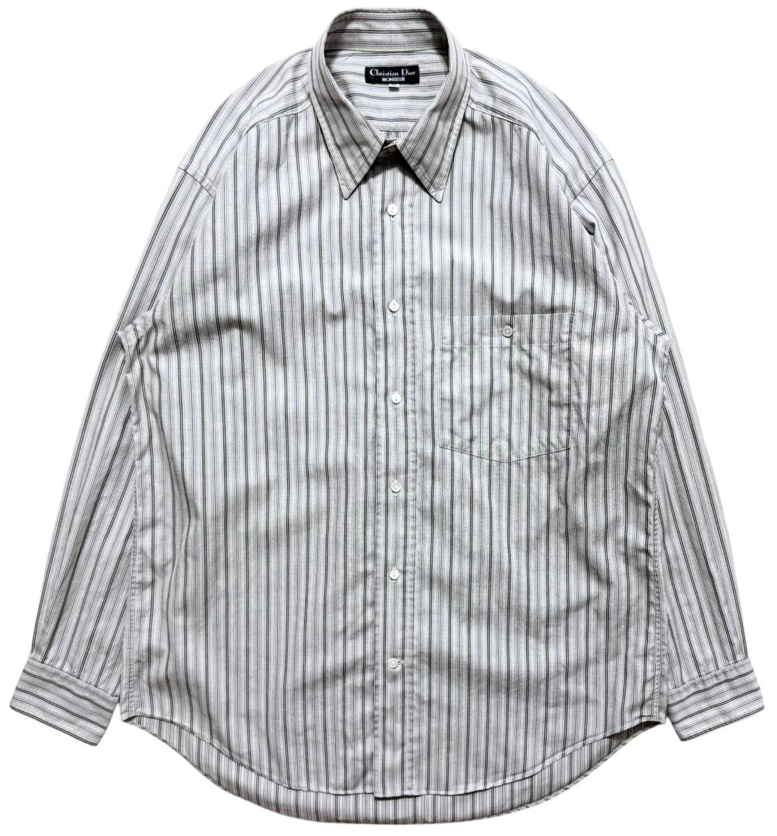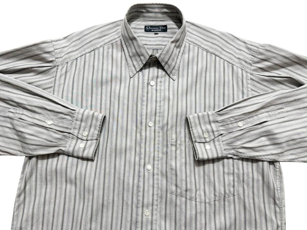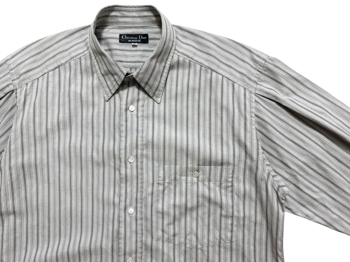 Christian Dior MONSIEUR クリスチャンディオール ムッシュ 90s ヴィンテージ オールド ビッグシルエット デザインストライプ 長袖シャツ M