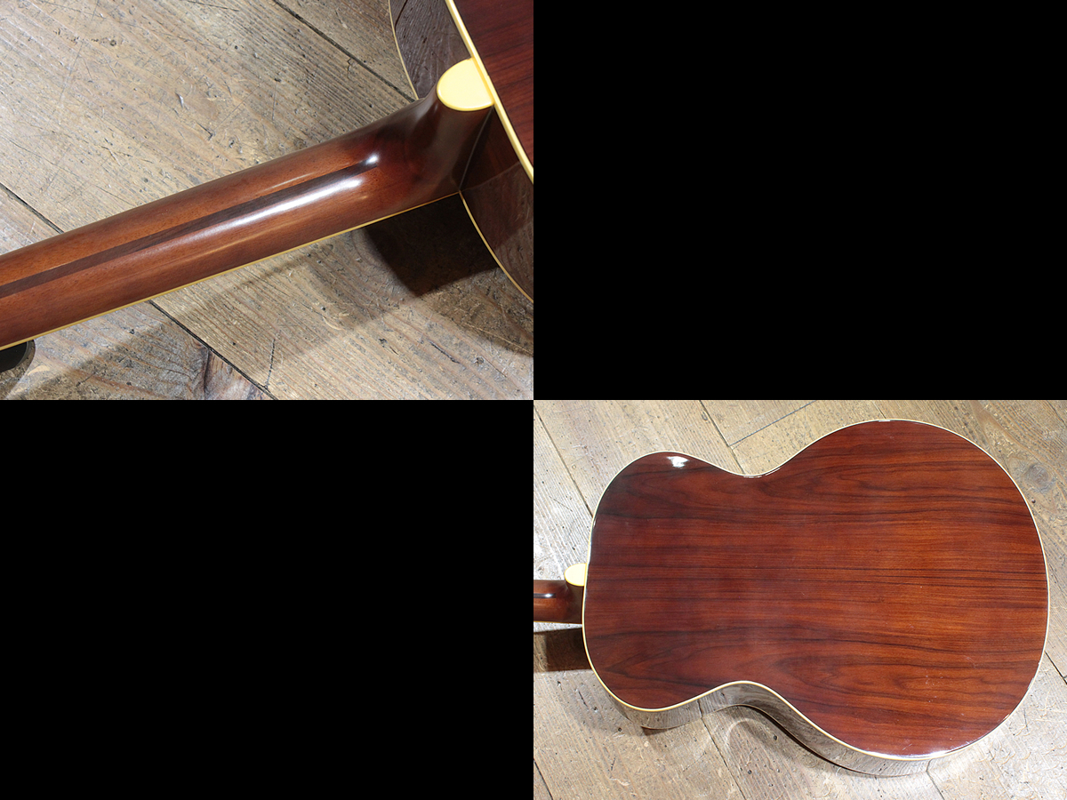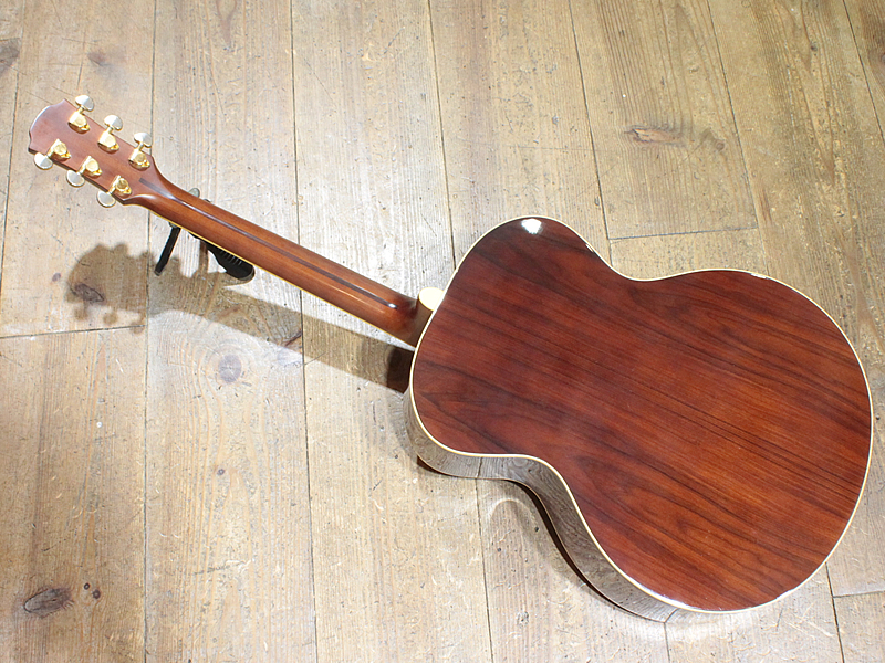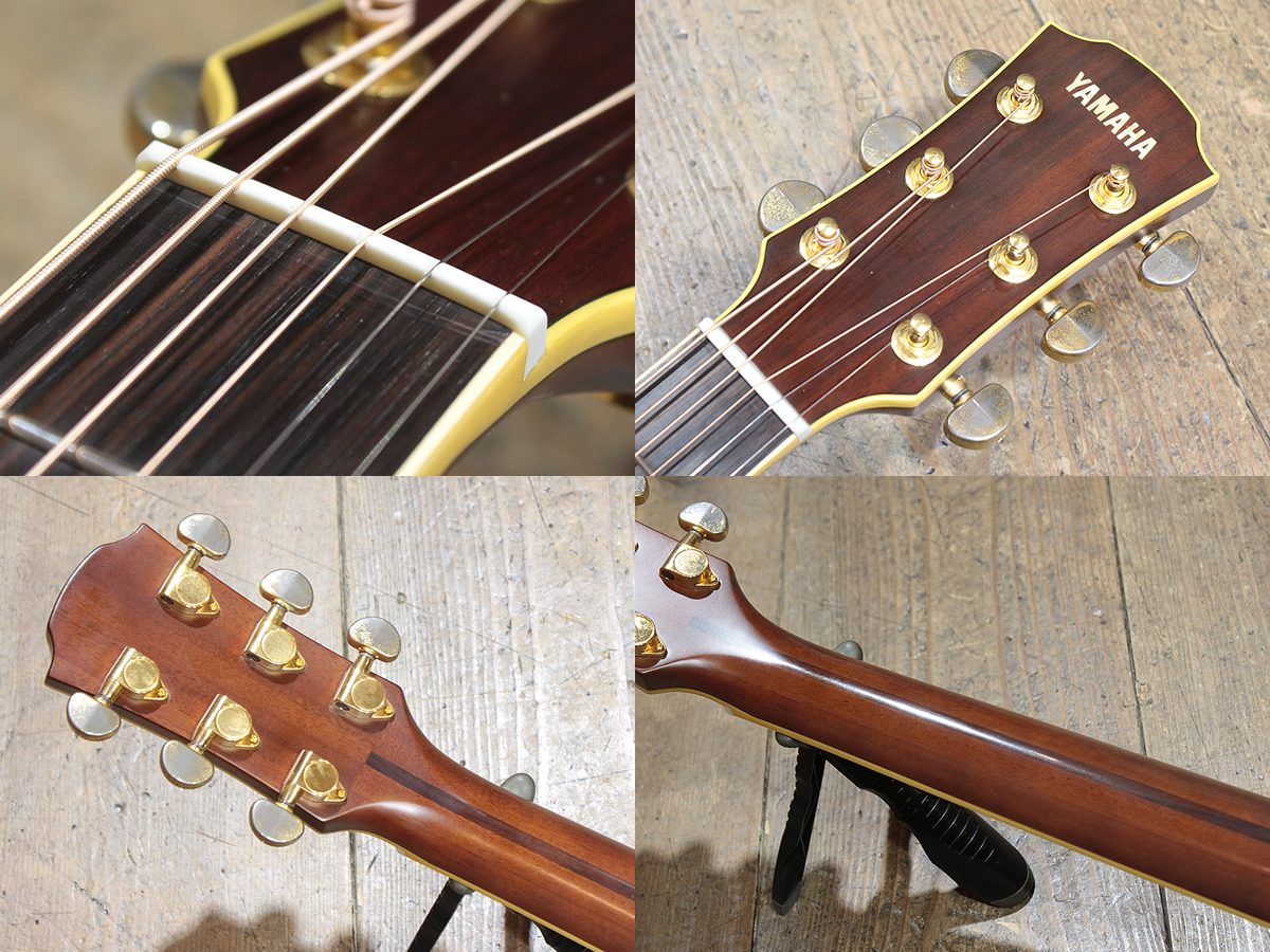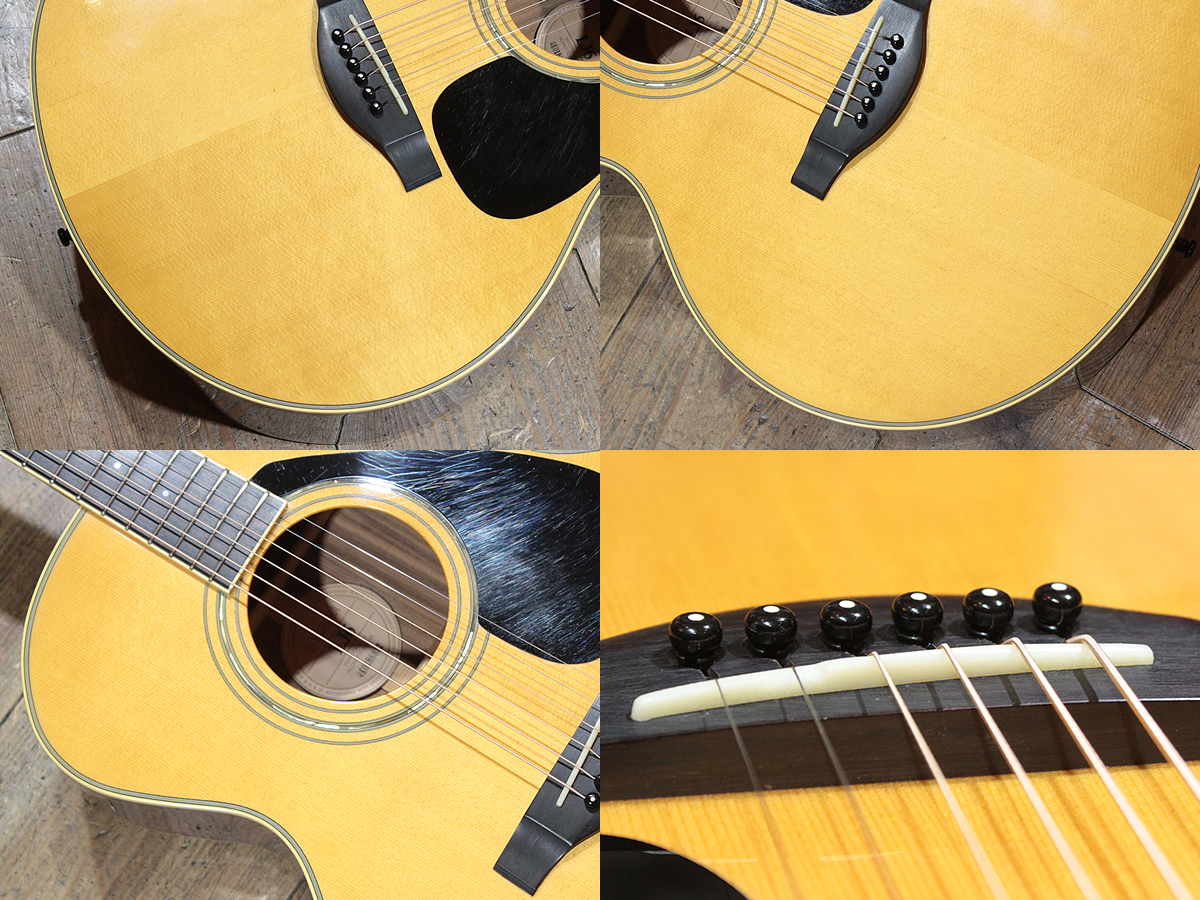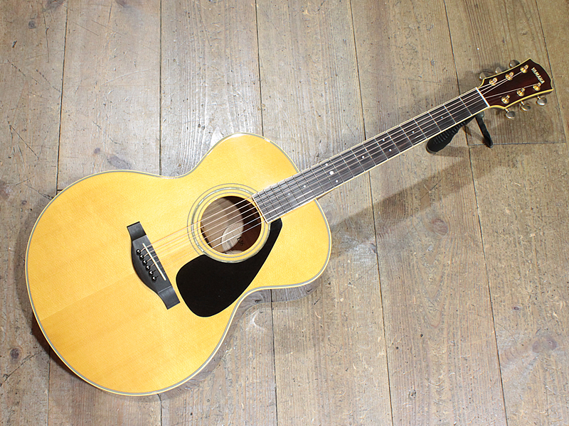 生産完了モデル。ヤマハのジャンボサイズ。形はジャンボですがGibsonのものよりも一回り小さいです。ソリッドイングルマンスプルースにローズウッドのサイド&バック、エボニー指板。それらのマテリアルとヤマハらしさから想像できるように、ダイナミックかつカチっとした響きをしています。ピックアップは付いておらず、純アコースティックギターです。
