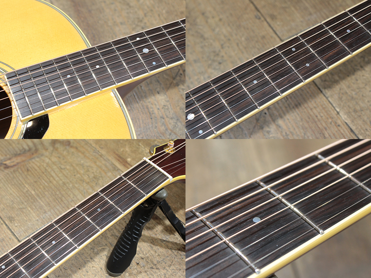 備考 (交換部品など) | 弦高:12フレット 1弦/2.0mm 6弦/2.3mm ※クリーニングの際に蜜蝋ワックスを用いておりますので上からそのままオレンジオイルなどを重ねると弾きます。出荷時に除去も可能ですので、ご自身のケアの方法にあわせてお申し付けください。 |