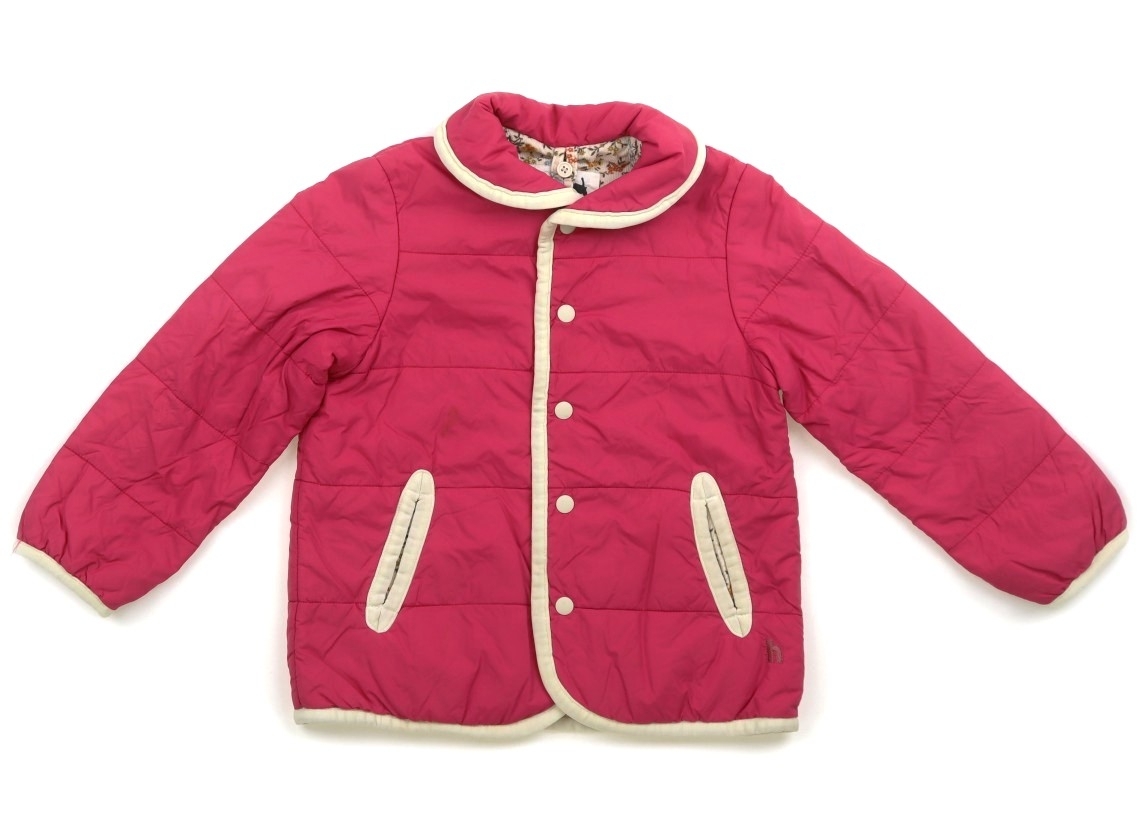 品質タグの一部が切られ表示が薄くなって見えません。素材不明です。中綿入り。首元パイピングにシミ、右ポケット上に汚れあります。