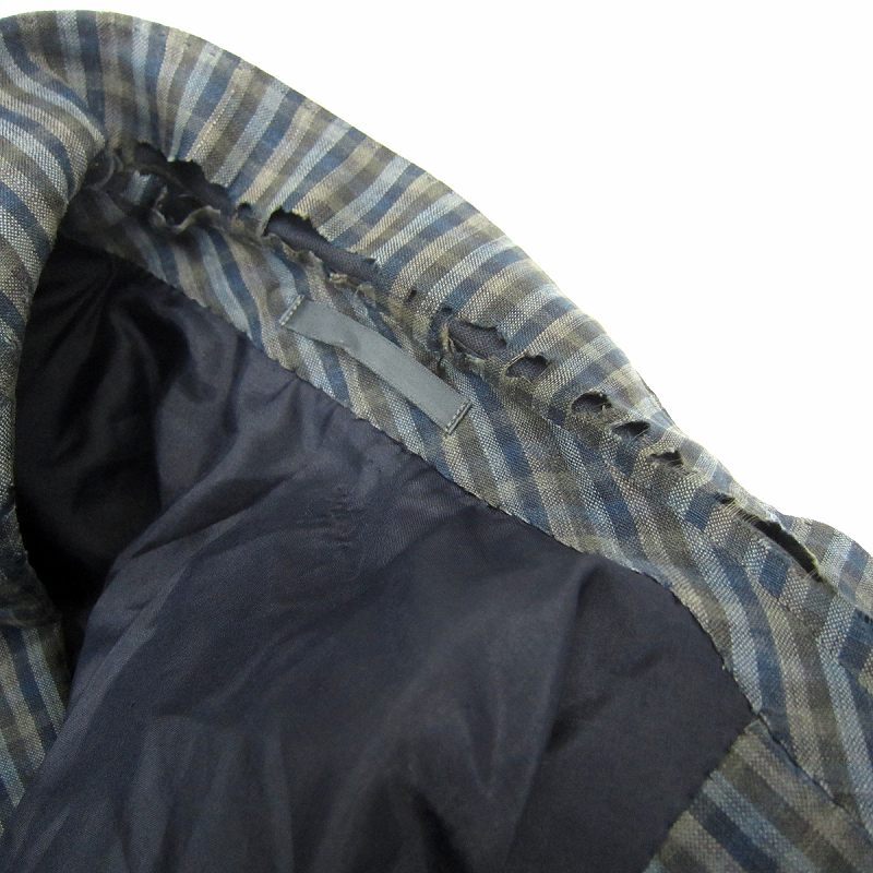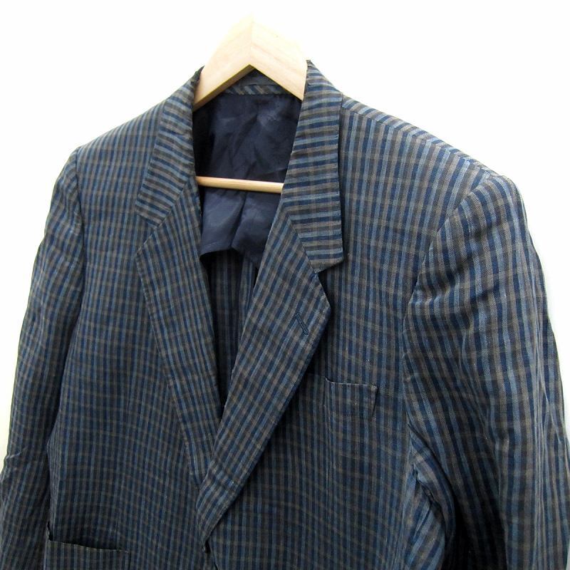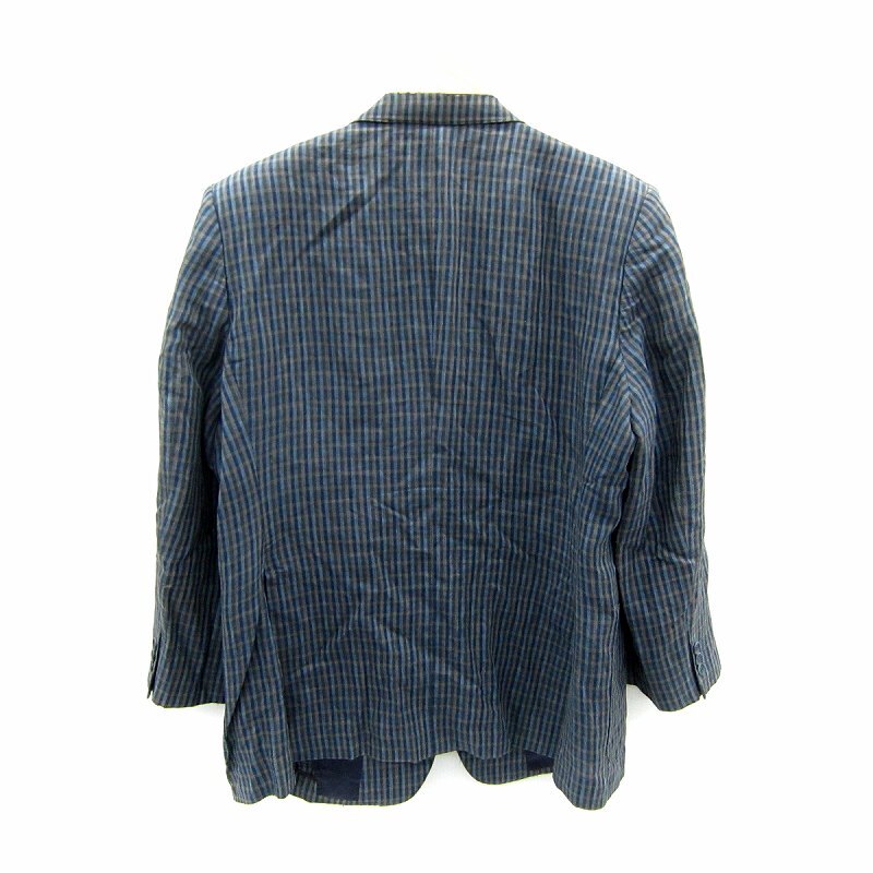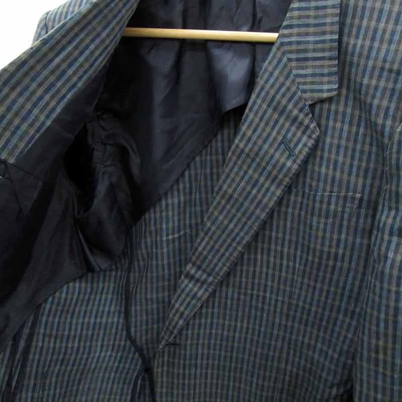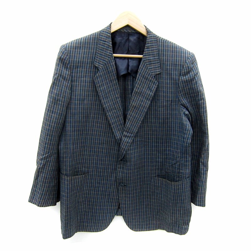 ランバン LANVIN テーラードジャケット ミドル丈 シングルボタン チェック柄 リネン 麻 ST50-56 ネイビー /SY30 ■GY53 メンズ