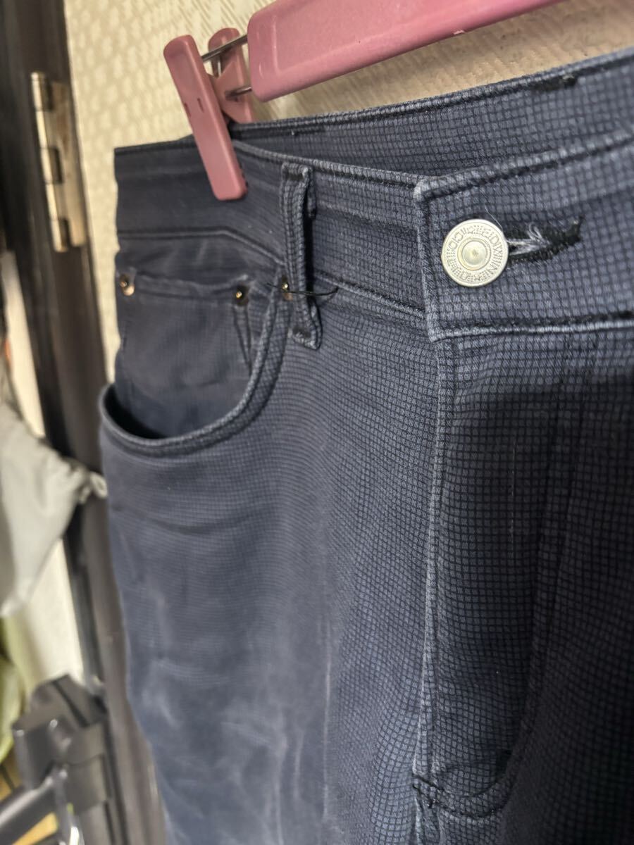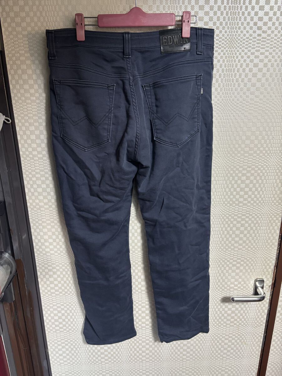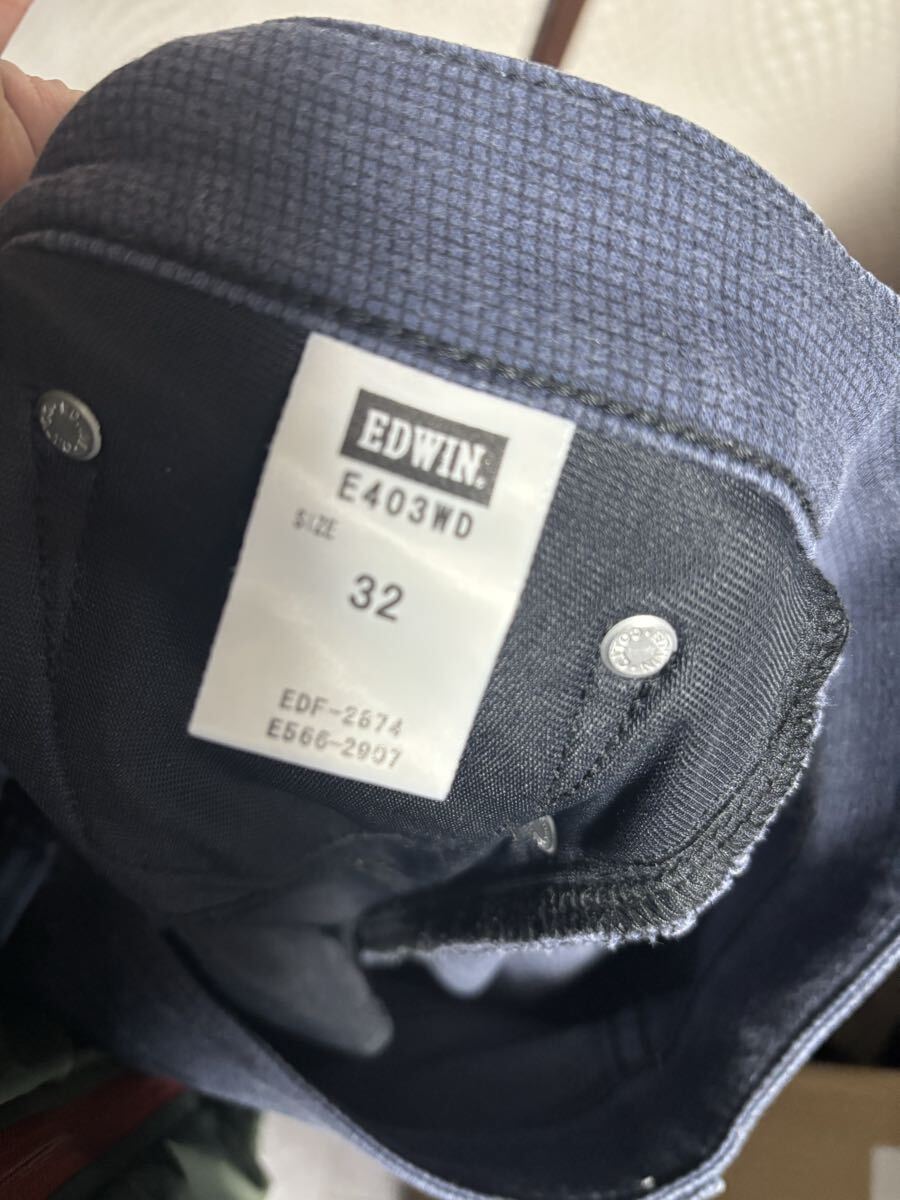 エドウィンのストレッチジーンズです。サイズ32表記で平置きウエスト43、股下74裾幅19.5全長101センチ位です。