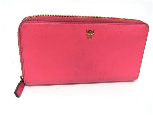 MCM エムシーエム レザー ラウンドファスナー 長財布 ウォレット 札入れ 小銭入れ レディース ピンク系 DJ0191