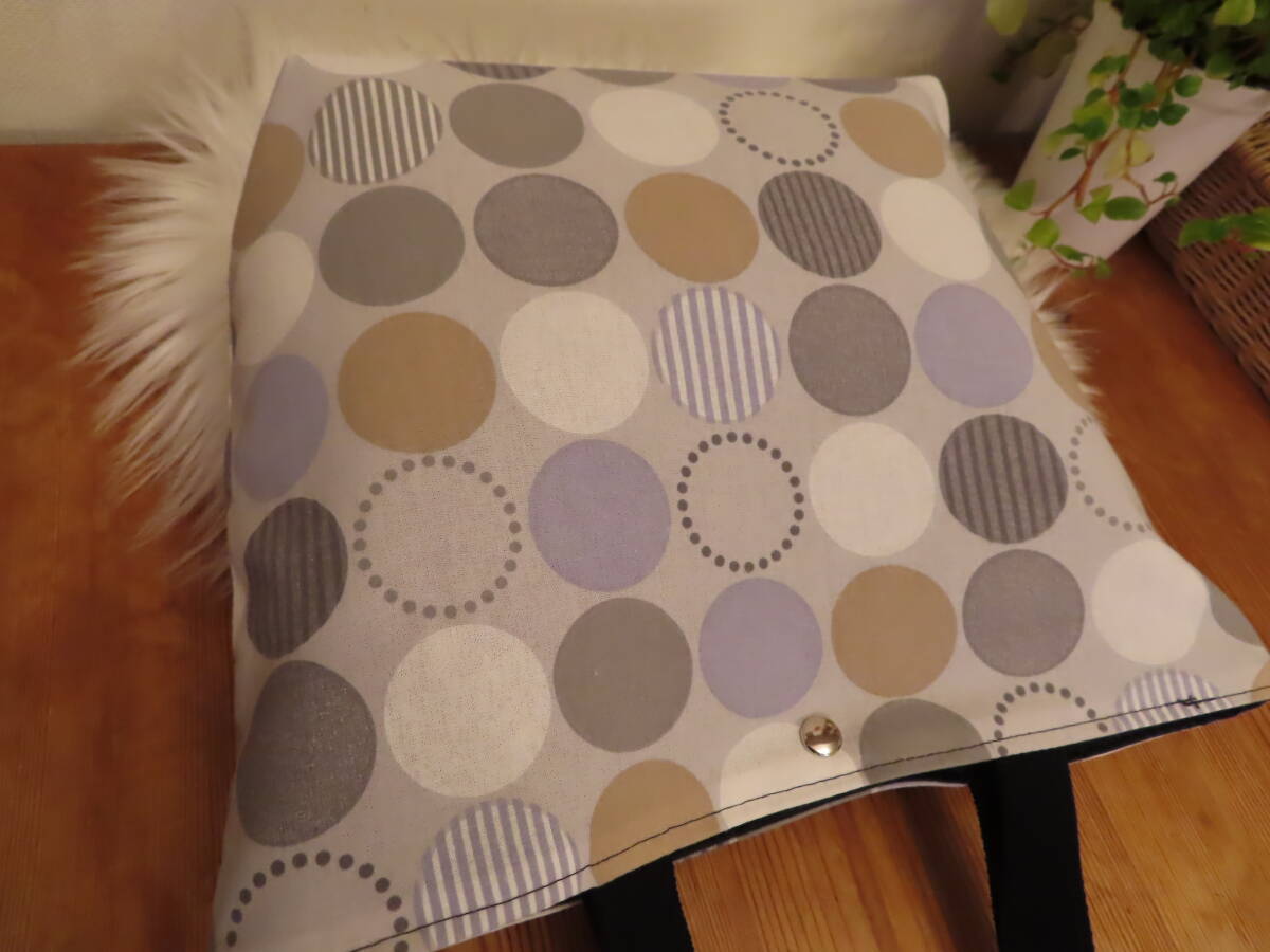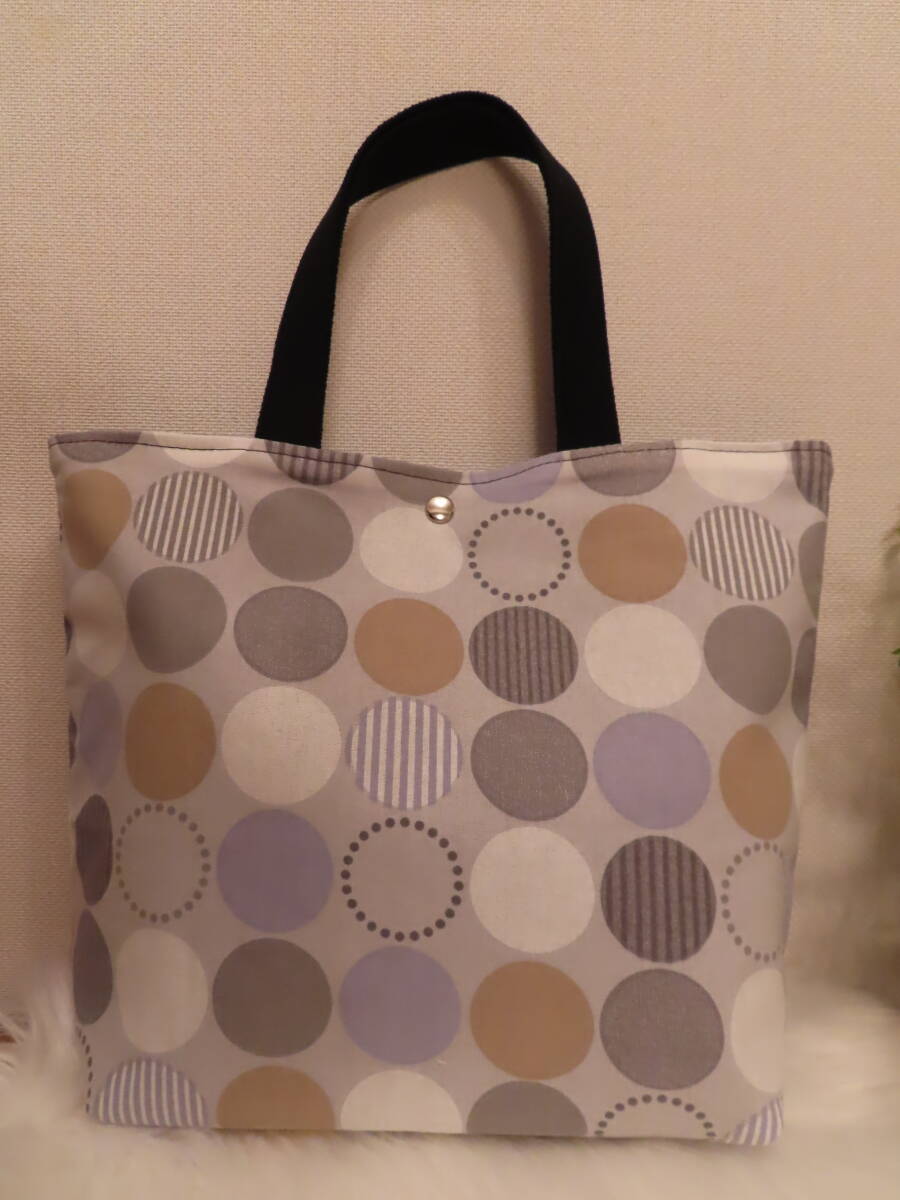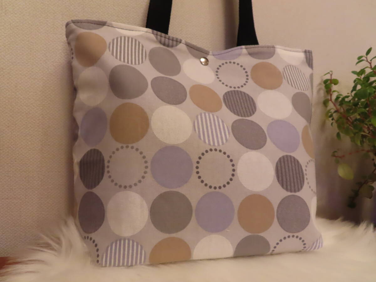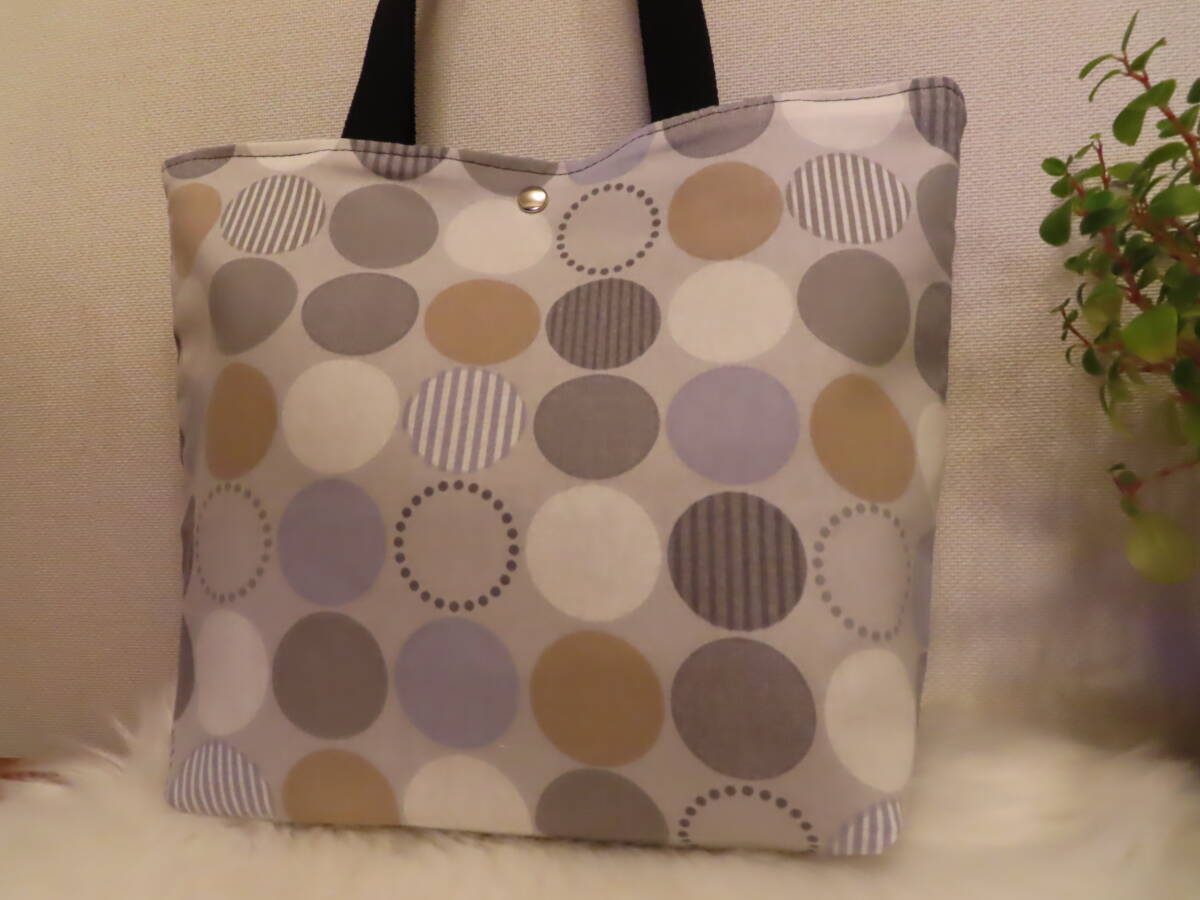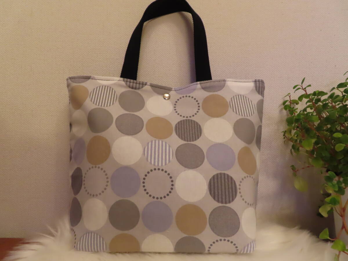 16 ハンドメイド サブバッグにも便利な 手提げトートバッグ 内布 撥水加工 ドット グレー プリント柄
