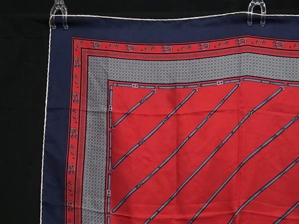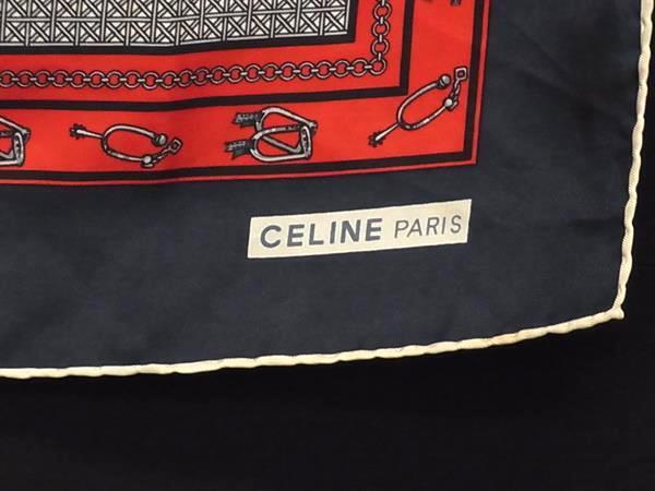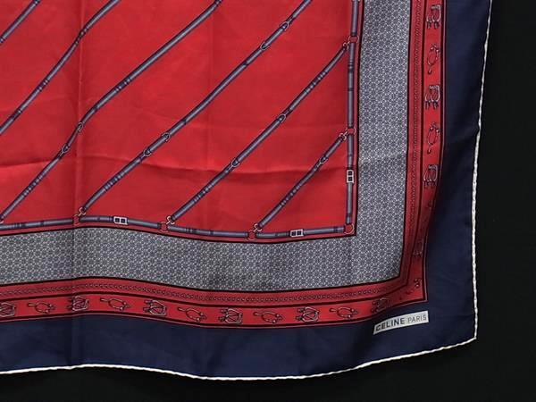 CELINE セリーヌ 総柄 大判 スカーフ ストール ショール レディース ネイビー系×レッド系×アイボリー系 DJ1381