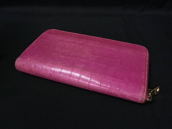 miumiu ミュウミュウ クロコダイル型押しレザー ラウンドファスナー 長財布 ウォレット 札入れ 小銭入れ レディース ピンク系 DK7674