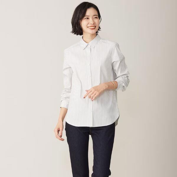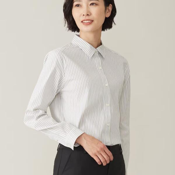 ロングシーズン活躍する!マニッシュなストライプ柄のシャツカラーブラウス