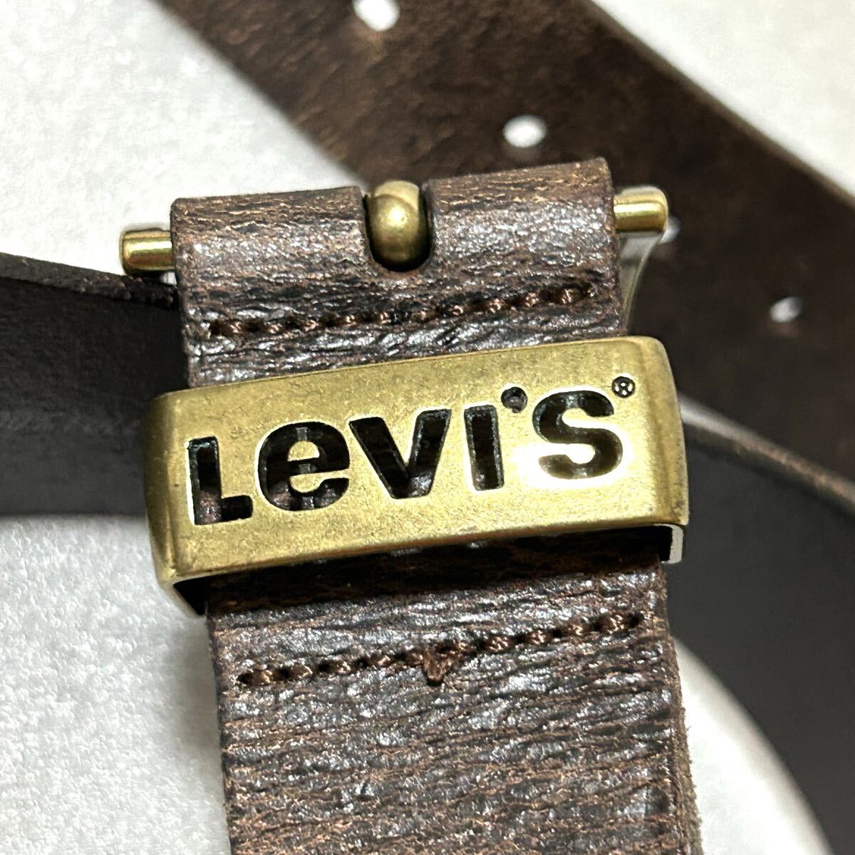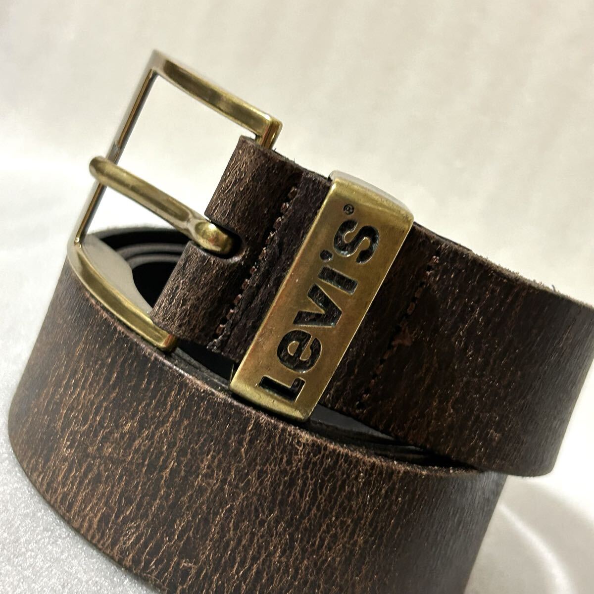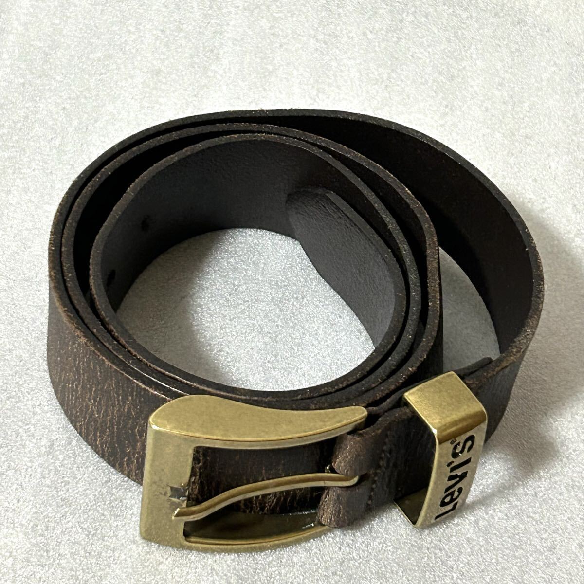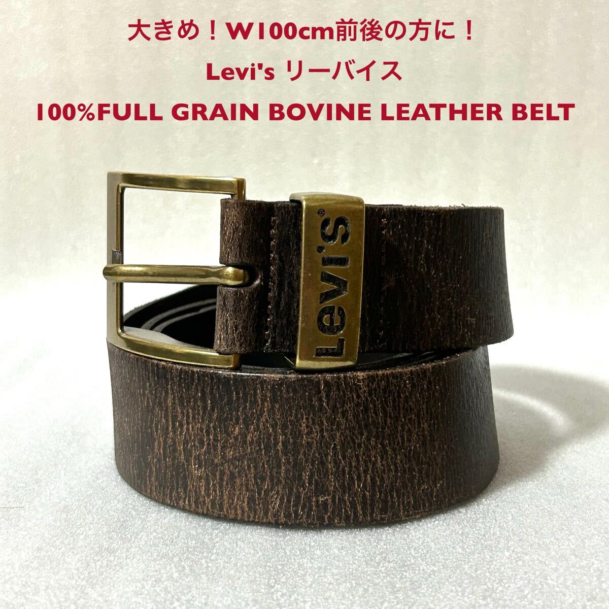 大きめ!W100cm前後の方に!Levi's リーバイス 古着レザーベルト 100%フルグレイン 中国製 茶 ブラウン