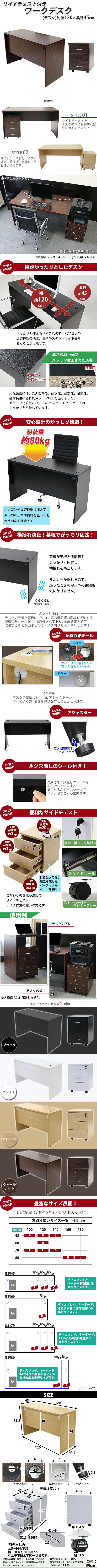 | 商品サイズ | ■本体寸法・・・デスク:約W120×D45×H73.5(cm) サイドチェスト:W約40×D約48.5×H約55.5(cm) ■梱包寸法(2個口)・・・デスク:約W128×D55×H13(cm) サイドチェスト:W約47×D約56×H約52(cm) |