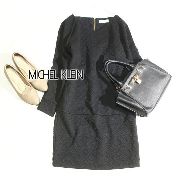 未使用 MICHEL KLEIN ミッシェルクラン 大人可愛い 厚め 立体ジャージー生地 ストレッチ ワンピース 38号 M 25C11
