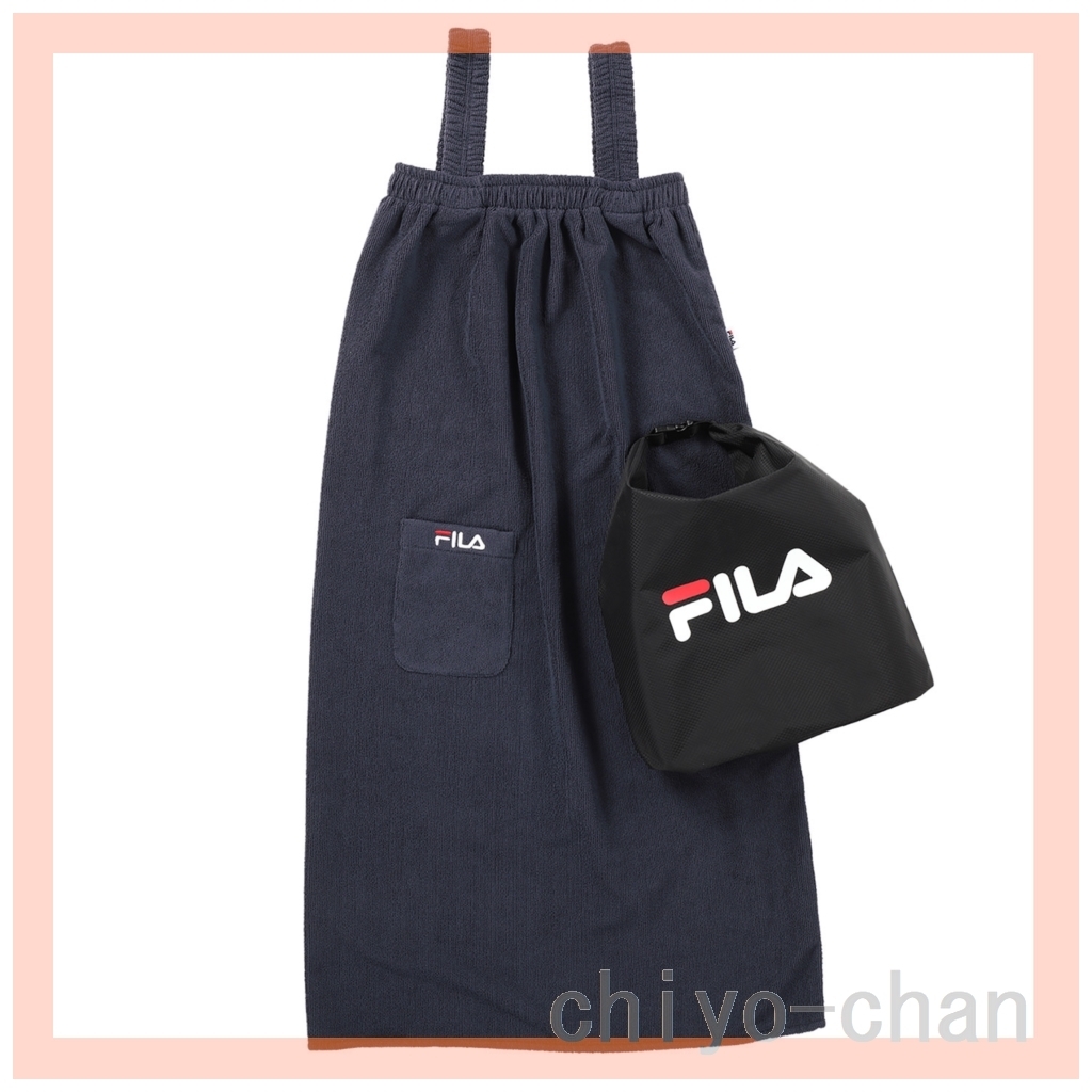 商品:フィラ はっ水 ショートドラムバッグ& くつろぎタオルワンピース ネイビー 28-791951001