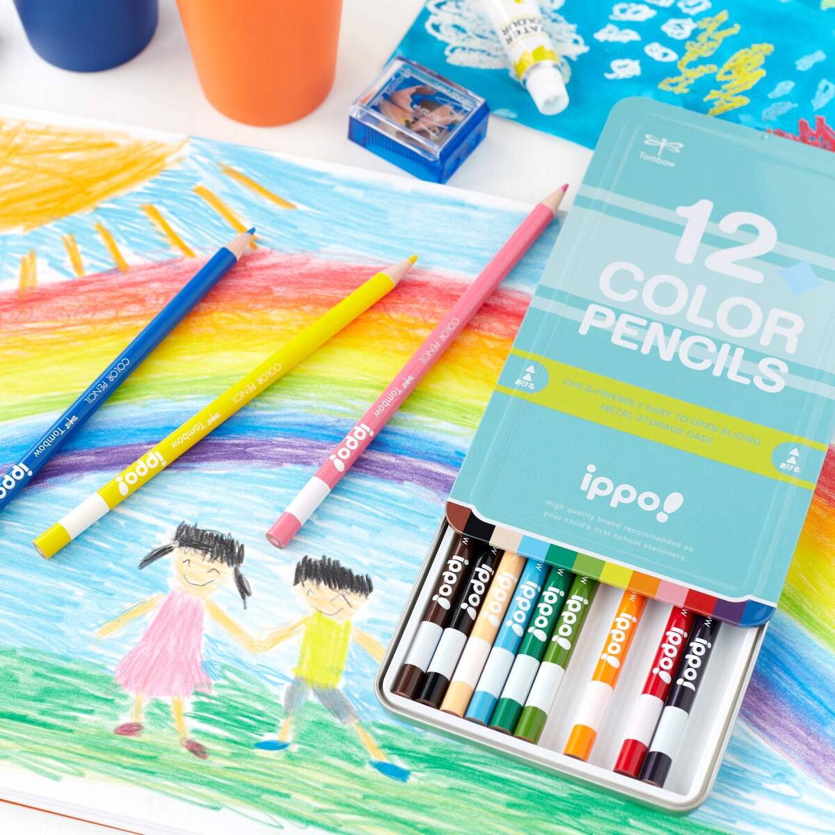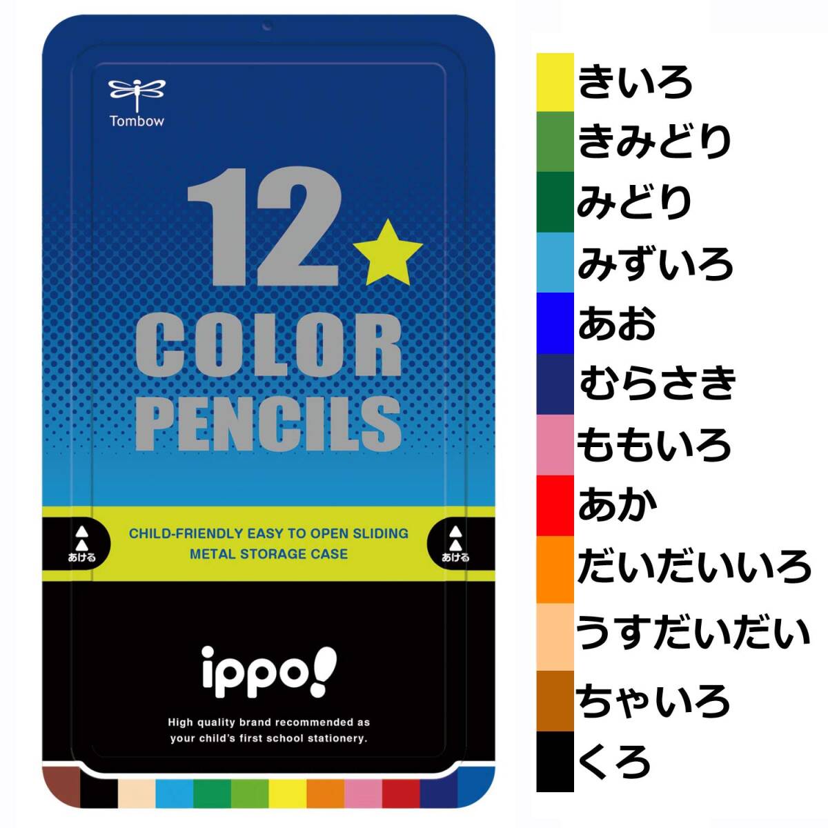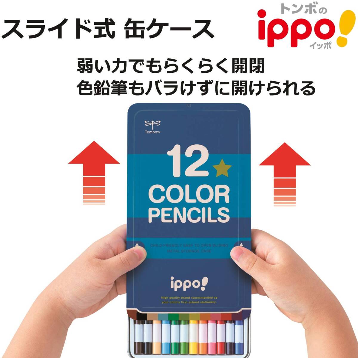 トンボ鉛筆 色鉛筆 ippo! スライド缶入 12色 プリント Boy CL-RRM0412C
