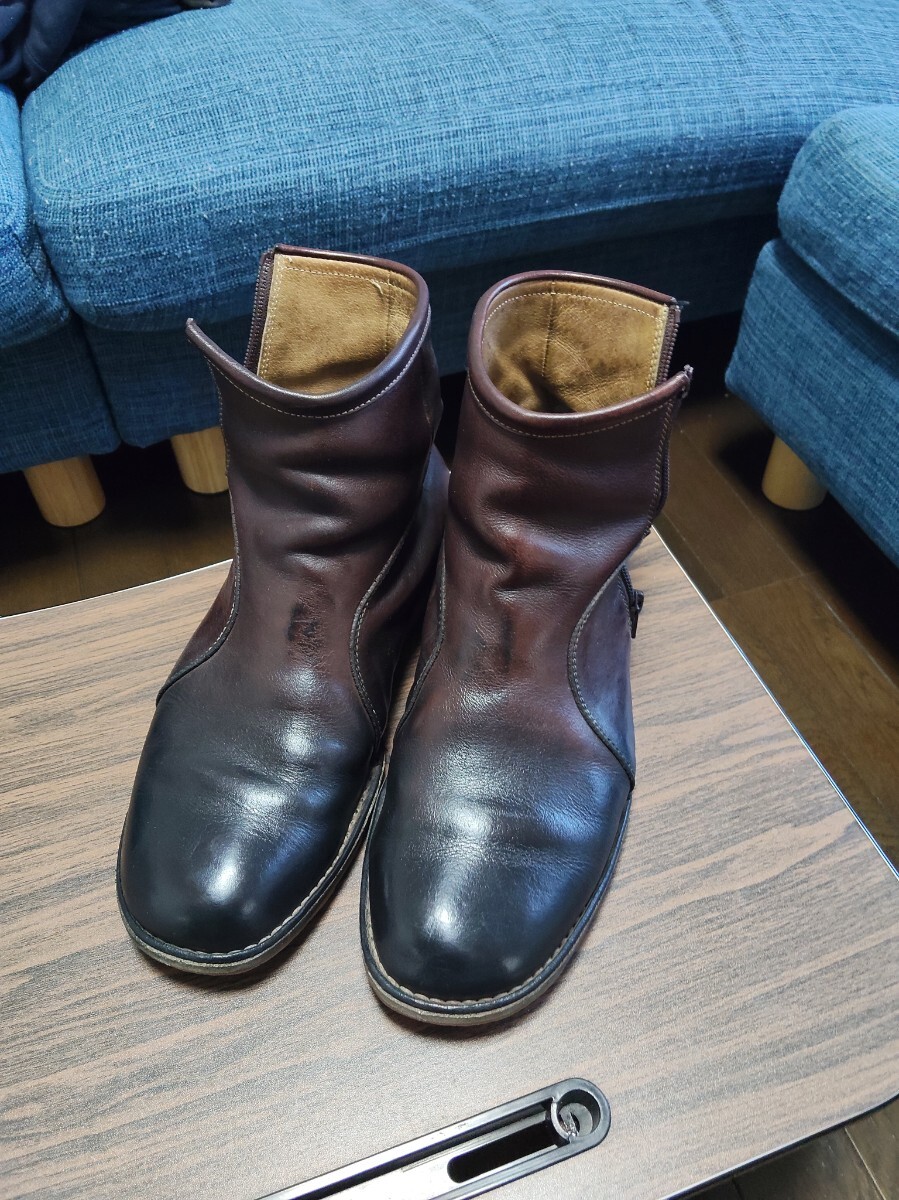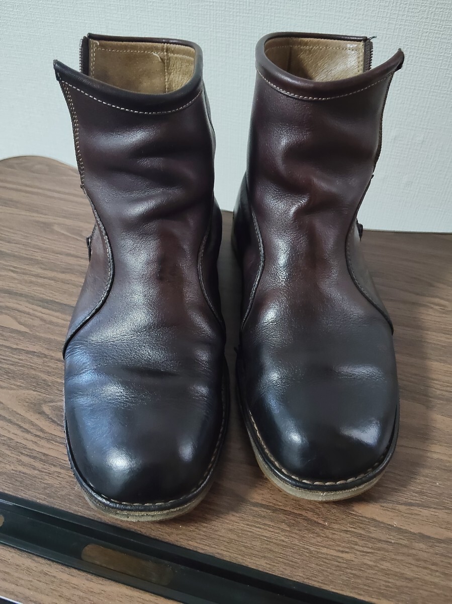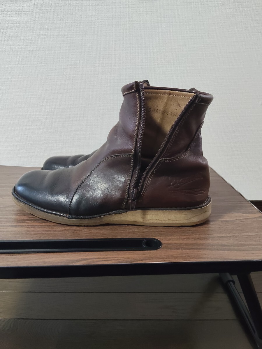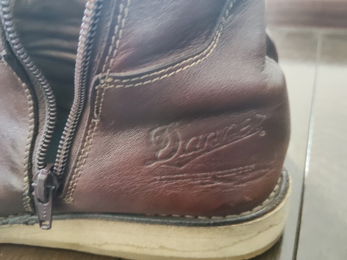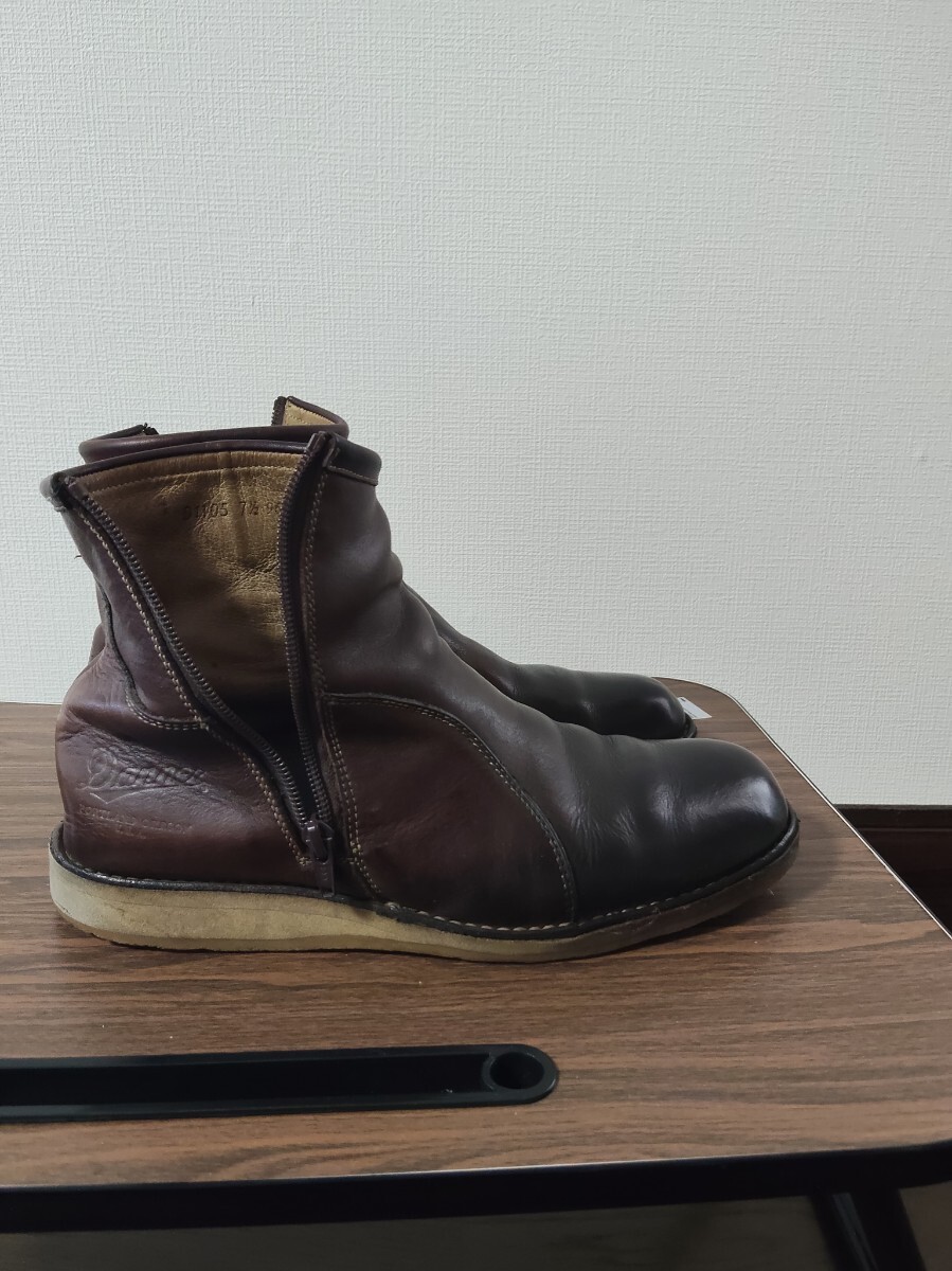 ダナーのブーツです。見ていただいたら分かると思いますが爪先部分を靴墨黒であえて黒くしてます。なのでジャンク扱いです。元々中古で購入した物で、その時から今のソールになっていましたので、前持ち主が貼り替えてるのかもしれません。古い物なのでノークレームノーリターンで宜しくお願い致します。