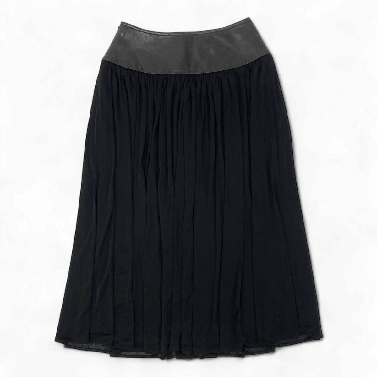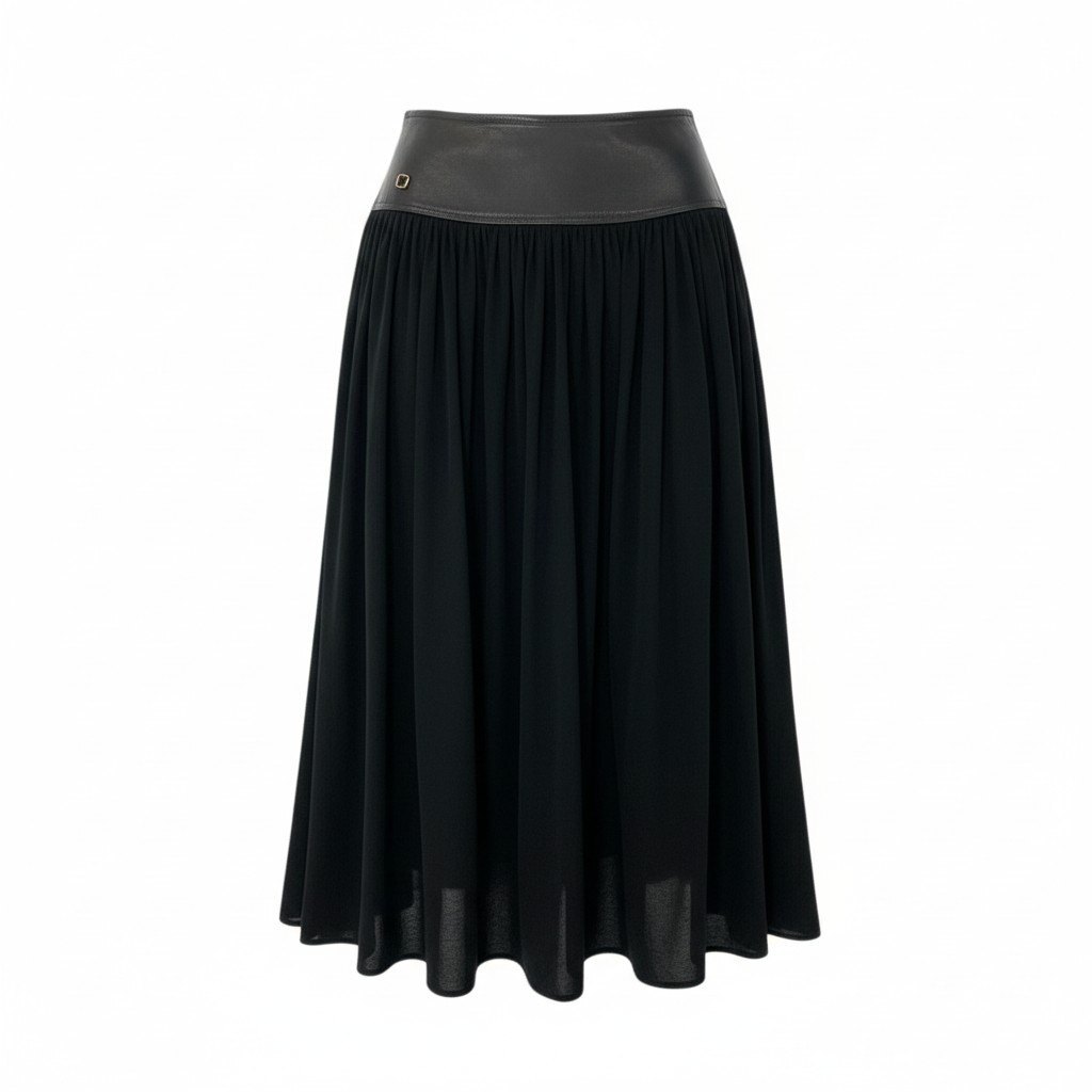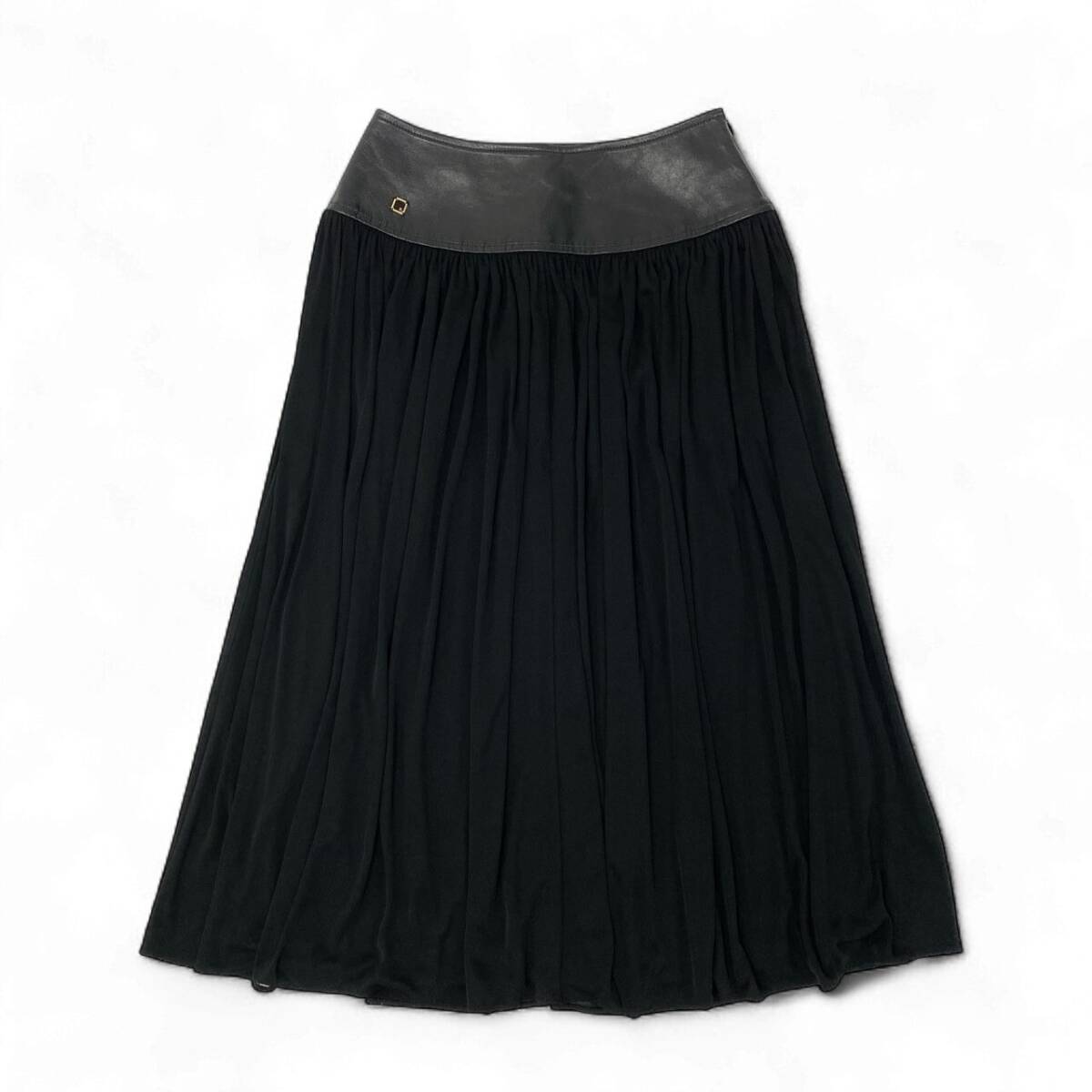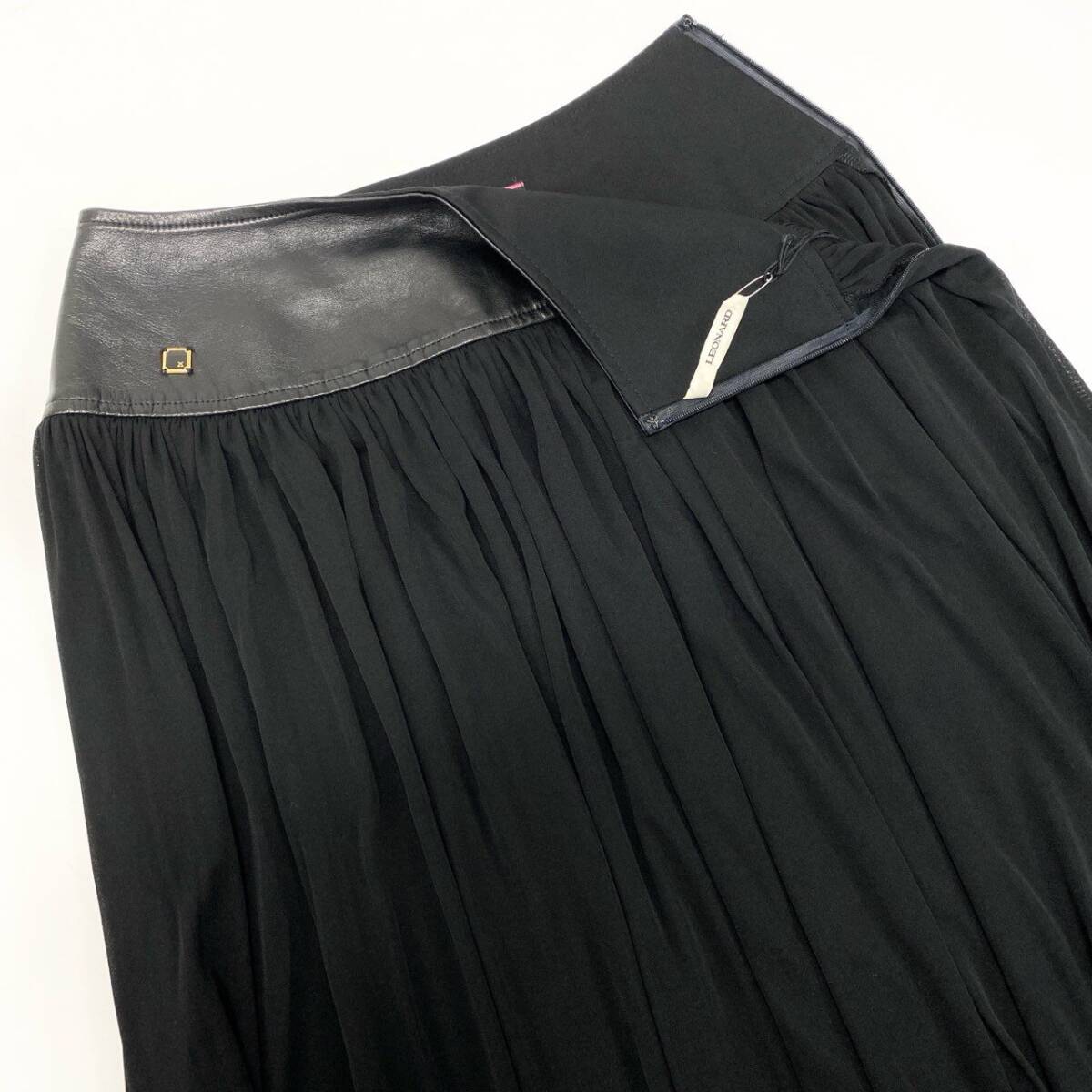| スタッフ商品コメント | ブラック×本革ウエストのコンビ素材が上品なレオナールのギャザースカートです。マットな黒のカンカン素材は軽く揺れる質感で、歩くたびに綺麗なドレープが出る女性らしい一着。本革ウエストの切り替えと小さなゴールド金具がさりげないアクセントになっています。Tシャツ合わせのカジュアルからブラウスとの上品コーデまで幅広く活躍。シーズン問わず使える万能ブラックスカートです。 |