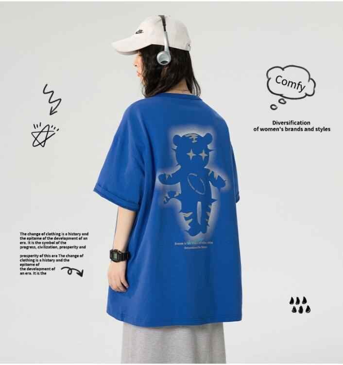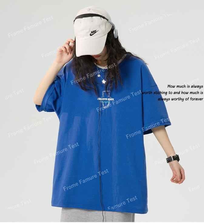 韓国風 レディース 半袖Tシャツ 新しい夏 カジュアル ファッション半袖Tシャツ 2XL ブルー