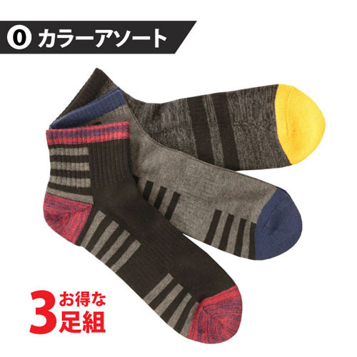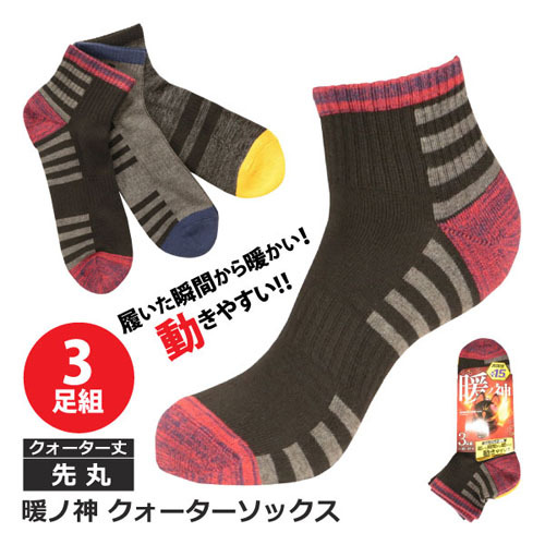 コーコス 防寒 ソックス 靴下【 SE-3301 】 暖ノ神 クォーターソックス カラーアソート3足組●先丸● 25.0-27.0cm ※ネコポス発送