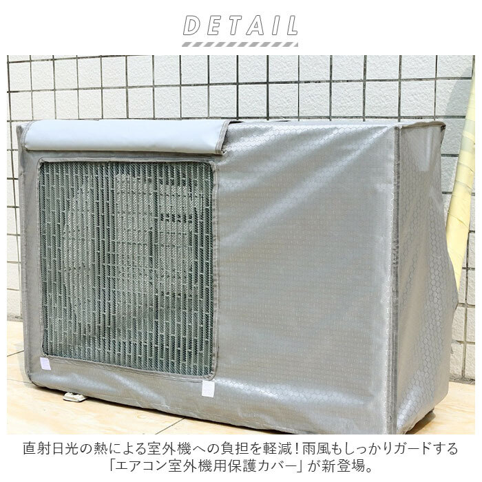 | 商品説明 | ・・直射日光の熱による室外機への負担を軽減!雨風もしっかりガードする「エアコン室外機用保護カバー」が新登場。 ・ハニカム状に丈夫に編み込まれたポリエステル生地が直射日光を反射!高温によるエアコンの運転効率低下を防止。 ・室外機の温度上昇を防ぐことで、冷房効率のアップだけでなく節電対策にも効果的。 ・フロントの吹き出しファン部分、室外機左側面と背面側にメッシュ生地を使用し、通気性をしっかり確保。熱を逃がしながら、ホコリ汚れもカット。 ・装着はとっても簡単。室外機にカバーをすっぽりと被せて、右側面のバックルベルトをパチンと留めるだけ!裾のドローコードを絞ることでよりピッタリと装着可能。 ・フロントフラップを開いて、背面のストラップでフラップの裾を結んで固定すれば、エアコン稼働シーズンでもカバーをしたまま使用可能。 ・エアコンを使用しないオフシーズンには、フラップを面ファスナーで閉じるだけで雨風やホコリの侵入をシャットアウト! ・カバー生地が室外機のボディを雨の水滴や泥汚れからカバー。劣化を防ぎながら、エアコンを長く大切に使えるのも嬉しいポイント。 ・室外機の筐体寸法に合わせてぴったりサイズがチョイスできる3タイプ。 |