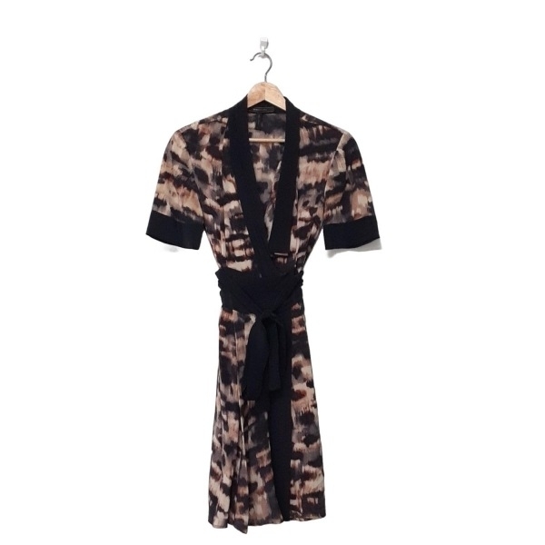 ビーシービージーマックスアズリア BCBGMAXAZRIA サイズXS ネイビー×ダークブラウン×マルチ レディース 半袖/ベルト 美品 ワンピース