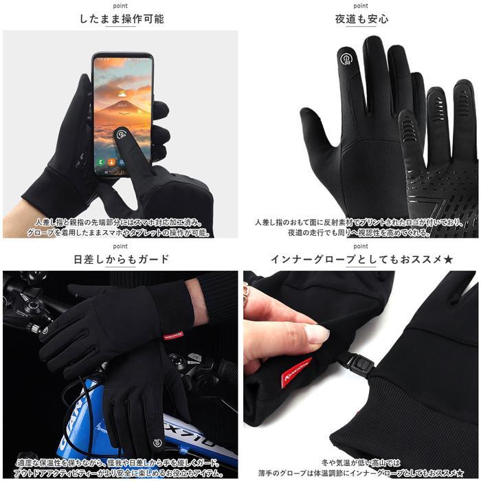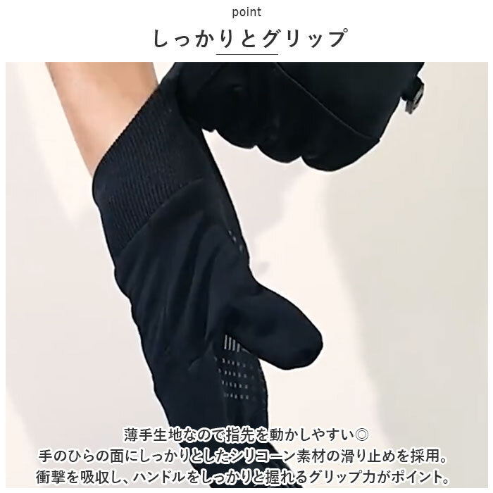 | 商品説明 | ・・防寒とはっ水性を兼ね備えた、指先までしっかりカバーできるサイクリンググローブの登場。 ・【防寒対策に】 ・グローブ内側には薄手の起毛素材が施され、冷えやすい指先までしっかりとあたたかさをキープ。寒い季節の防寒対策に活躍するアイテム。 ・【はっ水力あり】 ・突然の雨でもはっ水力があるので安心。(※完全防水ではありません。) ・【しっかりとグリップ】 ・薄手生地なので指先を動かしやすい◎手のひらの面にしっかりとしたシリコーン素材の滑り止めを採用。衝撃を吸収し、ハンドルをしっかりと握れるグリップ力がポイント。 ・【したまま操作可能】 ・人差し指と親指の先端部分にはスマホ対応加工済み。グローブを着用したままスマホやタブレットの操作が可能。 ・【夜道も安心】 ・人差し指のおもて面に反射素材でプリントされたロゴが付いており、夜道の走行でも周りへ視認性を高めてくれる。 ・【迷子にならない】 ・サイドには収納、保管に便利なバックル付き。片方だけが迷子にならずにカバンやリュックにいれても探しやすい。 ・【日差しからもガード】 ・適度な保温性を保ちながら、怪我や日差しから手を優しくガード。アウトドアアクティビティーがより安全に楽しめるお役立ちアイテム。 ・【インナーグローブとしてもおススメ★】 ・冬や気温が低い高山では薄手のグローブは体温調節にインナーグローブとしてもおススメ★ ・【使い方いろいろ】 ・シンプルなカラー&デザインなのでバイク・自転車、登山やアウトドアだけでなく、通勤通学時などデイリーに活躍。 |