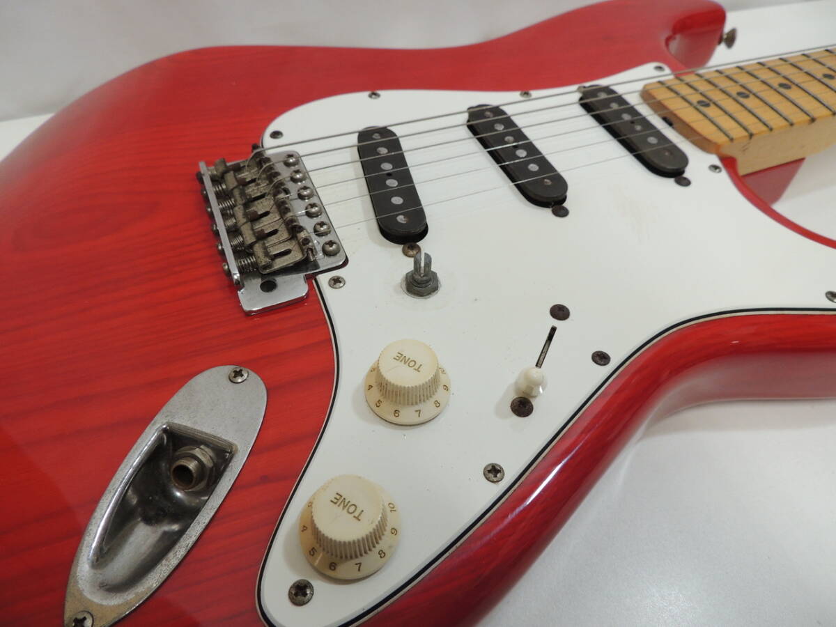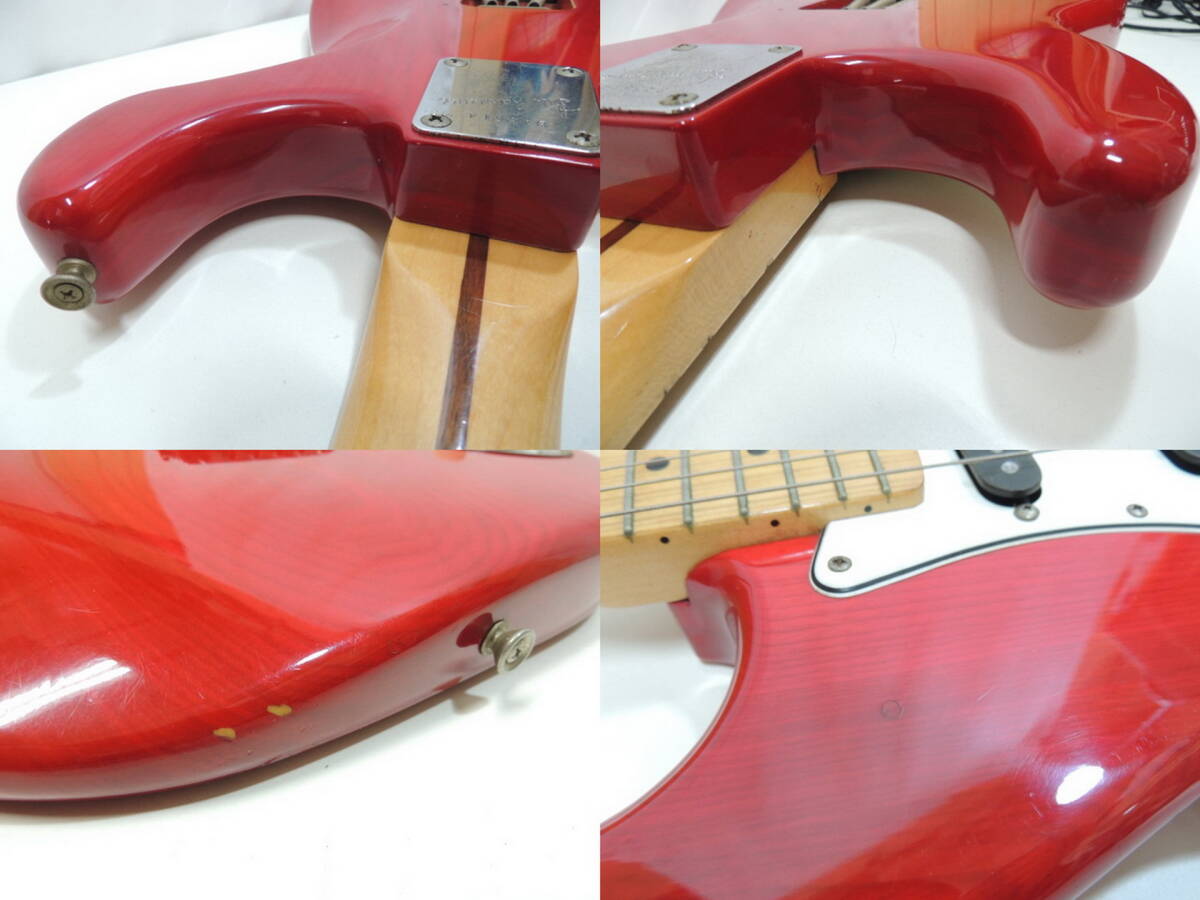 長年趣味としてギター収集・演奏をされていた方のお部屋を片付けて譲り受けた約30本のギターの中の1本です。 元オーナーがヘビースモーカーだった為、全てにタバコ臭が染みついており、非喫煙者の自分には部屋に置いておくだけで辛いほどのニオイがします。 ところどころ部品が無いものや破損部分があるものも多く、詳しい知識が無いので細かく状態を文章でお伝えすることが困難です。 恐らくカスタマイズされているであろう物が殆どですので、オリジナル状態が分からない自分には、説明に窮するものばかりです。 極端に申し上げますと、ネックとボディが別々のメーカーだというようなこともあるかもしれません。 題名や商品説明にも誤りが多くあるかもしれませんので、全て現物(画像)優先とさせていただきます。 できるだけ画像でお伝えできるように努力してはいますが、至らぬ点も多いかと思いますので、ご不明な点に関しては、ド素人でも確認できるように質問していただけますと非常に助かります。 以上の理由(難あり理由)により、何か不備等があっても対応できませんので、当該出品に関しては全て修理前提・部品取りとしてのジャンク品とさせていただき、ノークレーム厳守でお願い致します。 画像をよく確認していただき、識者の方が納得の上での入札をお願いできますと幸甚です。 (画像は実物より綺麗に見えますので過度な期待はなさらぬようお願い致します) 題名最後部の英数字は出品管理用ですので無視して下さい。 ■アンプに繋いで確認したところ、音は出ました。 ■外観、経年劣化や使用にともなう傷みや汚れがございます。 (欠品部品も含め画像参照にてご確認下さい) ■画像のものが出品物の全てです。 (背景内のものは含まれません) ■1円スタートです.....宜しくお願い致します。 ■入札された時点で下記注意事項を全てご確認及びご同意いただいたと判断します | ||||