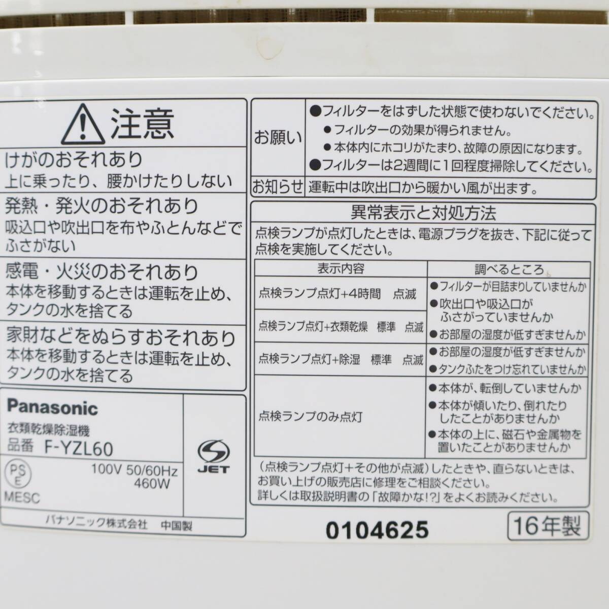 ▲花粉・ウイルス対策に! 家電|衣類乾燥除湿機|Panasonic パナソニック F-YZL60 |ホワイト 2016年製 ■P2632の出品です!