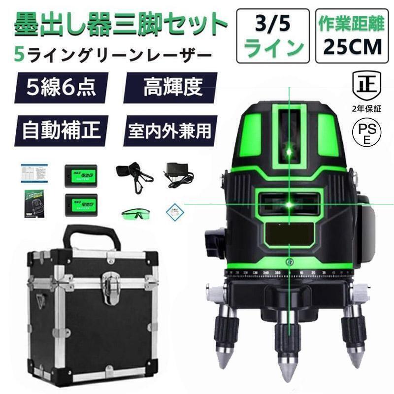 1円 即納充電式 墨出し器 水平器レーザー墨出し器 新品 バッテリー2個付き レーザー 5ライン 6点フルライン 高精度 大矩ライン 光学測定器