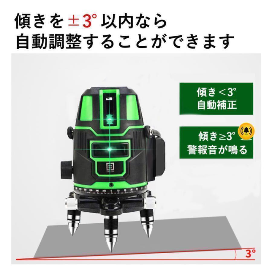 • 【傾斜モード】振り子式を採用、傾斜角度が3°以上,斜数秒後レーザー光が自動消灯し、 傾斜警告ブザーの音が鳴ります。