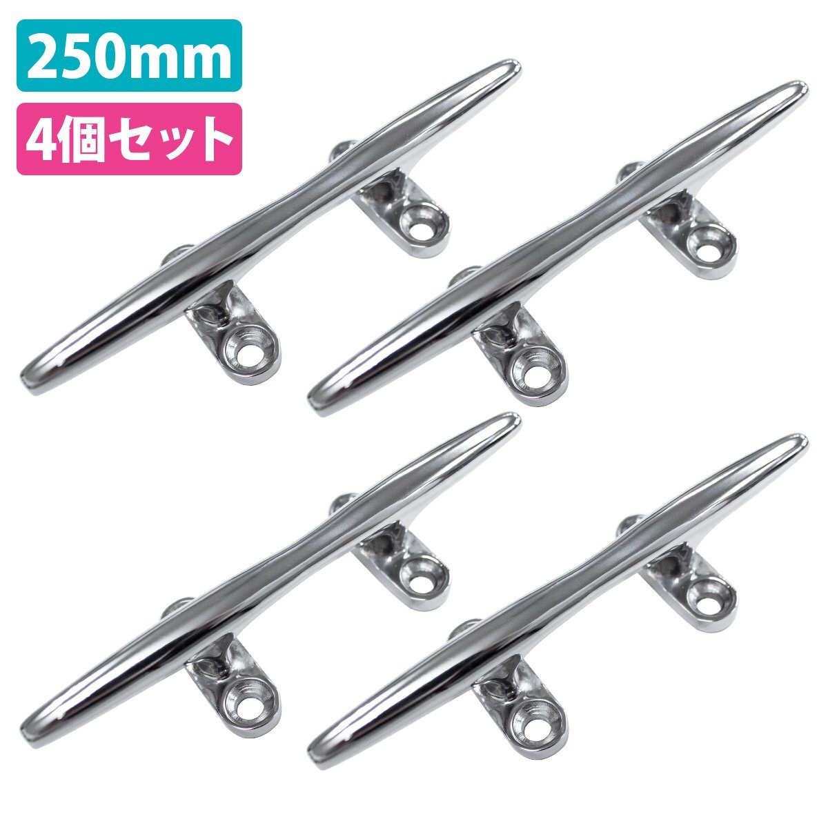 【新品即納】4個 セット ステンレス製 250mm クリート Lサイズ 船 ヨット 船舶 係留 停泊 ボート フェンダー ロープ 固定 25cm