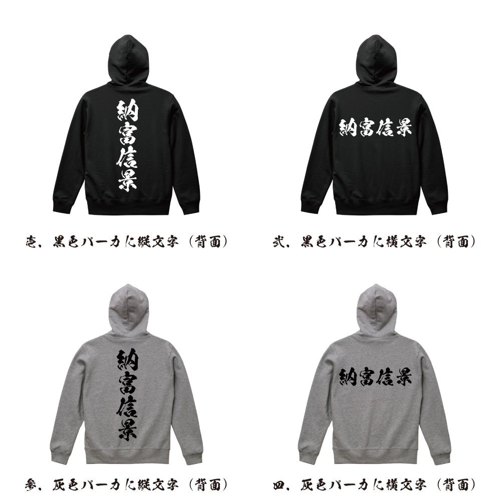 納富信景 (のうとみのぶかげ) オリジナル パーカ 書道家が書く プリント フルジップ パーカー S M L XL XXL 110 130 150 【 戦国武将 】