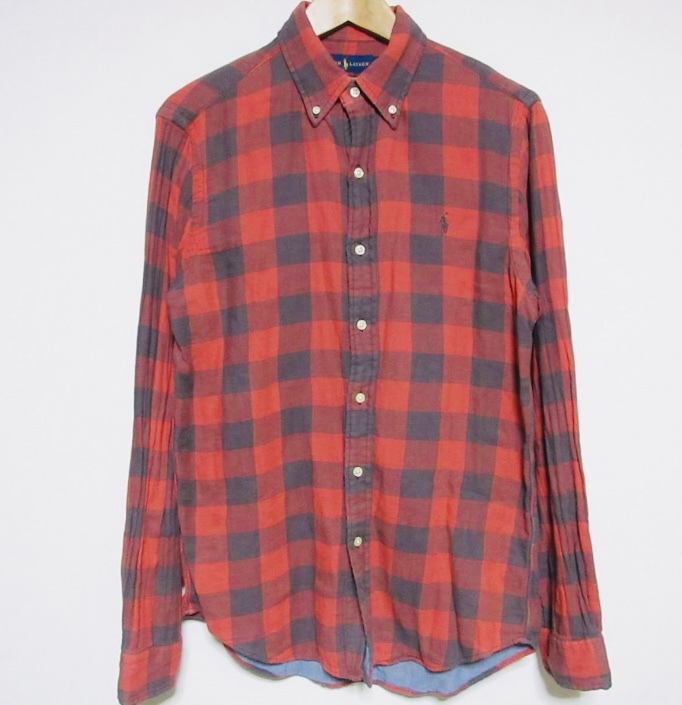 Ralph Lauren ラルフローレン チェック柄 ボタンダウン 長袖シャツ S 現行タグ レッド×ブラック