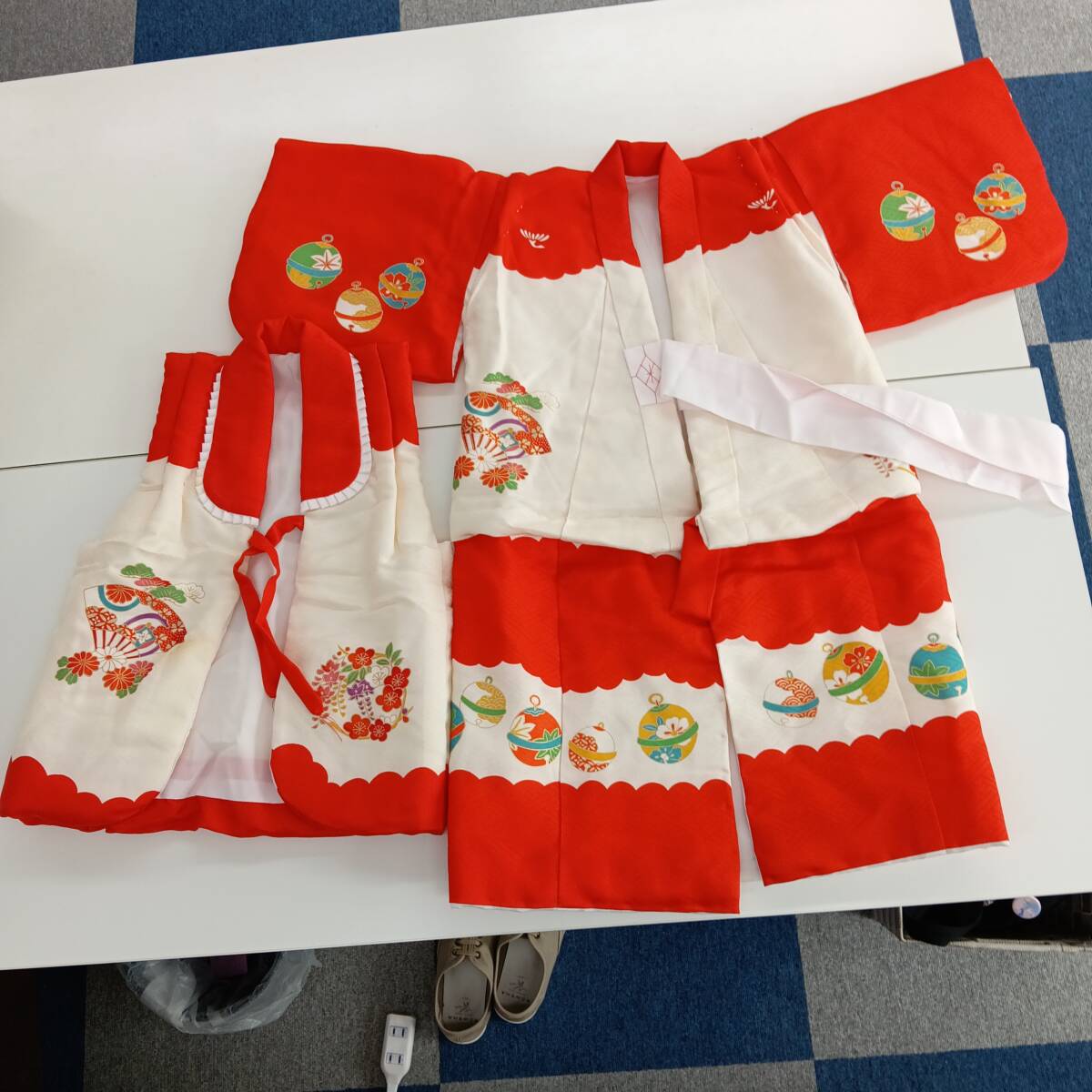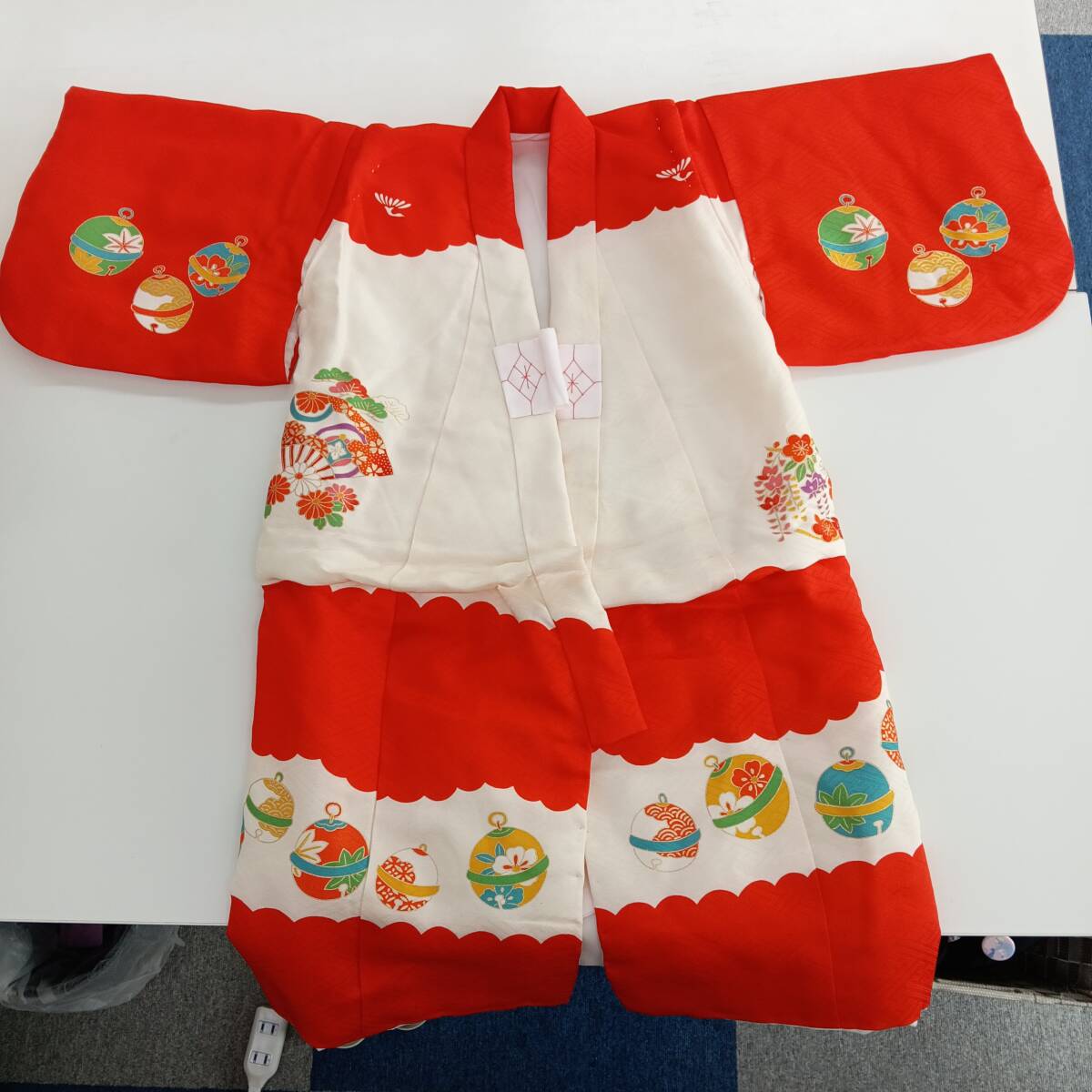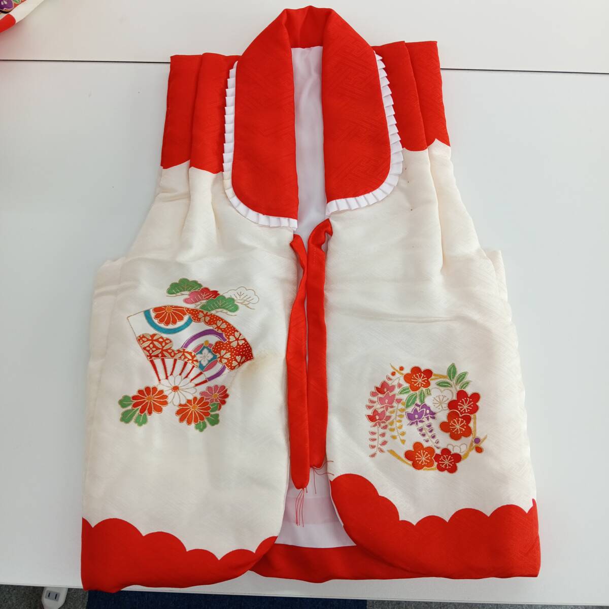 【良品】女児でんじセット 着物 ちゃんちゃんこ 花車柄 ベビー服 お宮参り【セット品】 です。