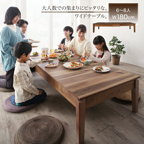 ローテーブル 伸縮 ダイニングテーブル 6人 8人 6人掛け 天然木 ウォールナット 高さ37 幅120-180