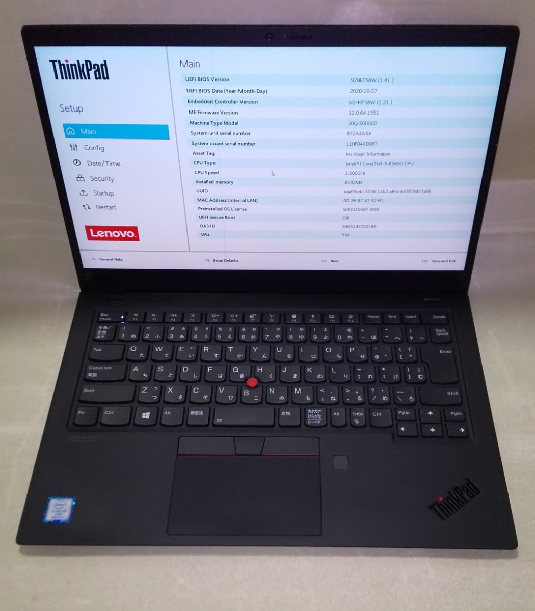 【Bios OK】 Lenovo ThinkPad X1 Carbon 20QE i5-8365U/8GB 第8世代 ①