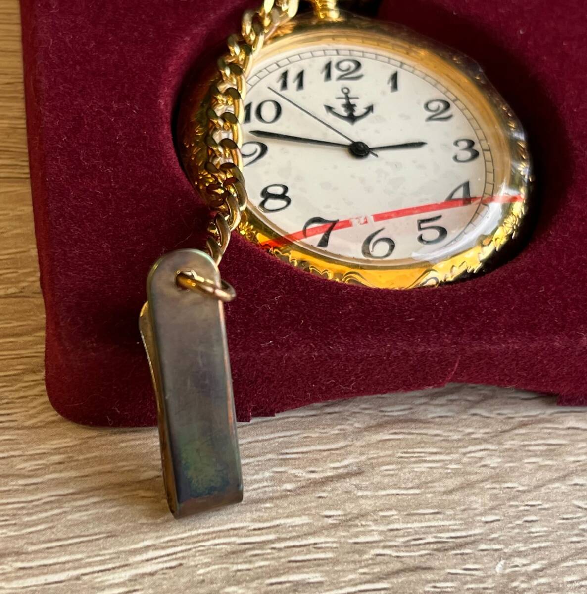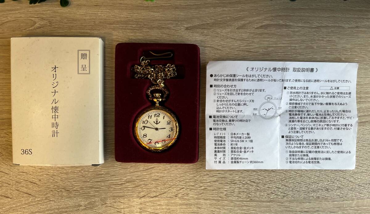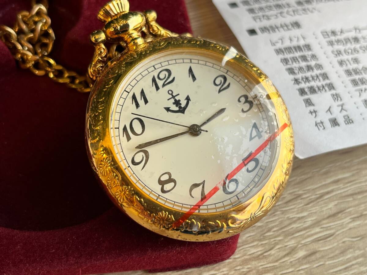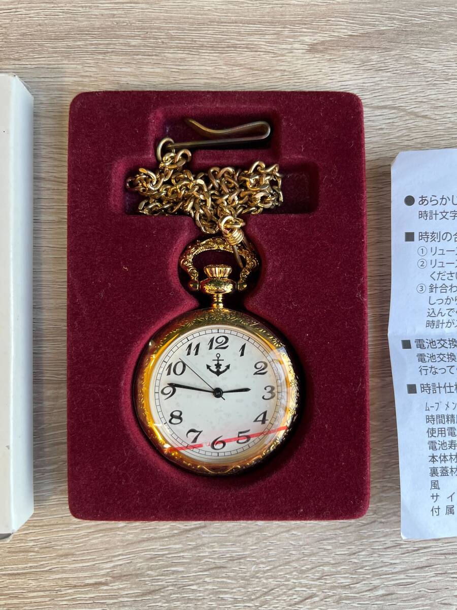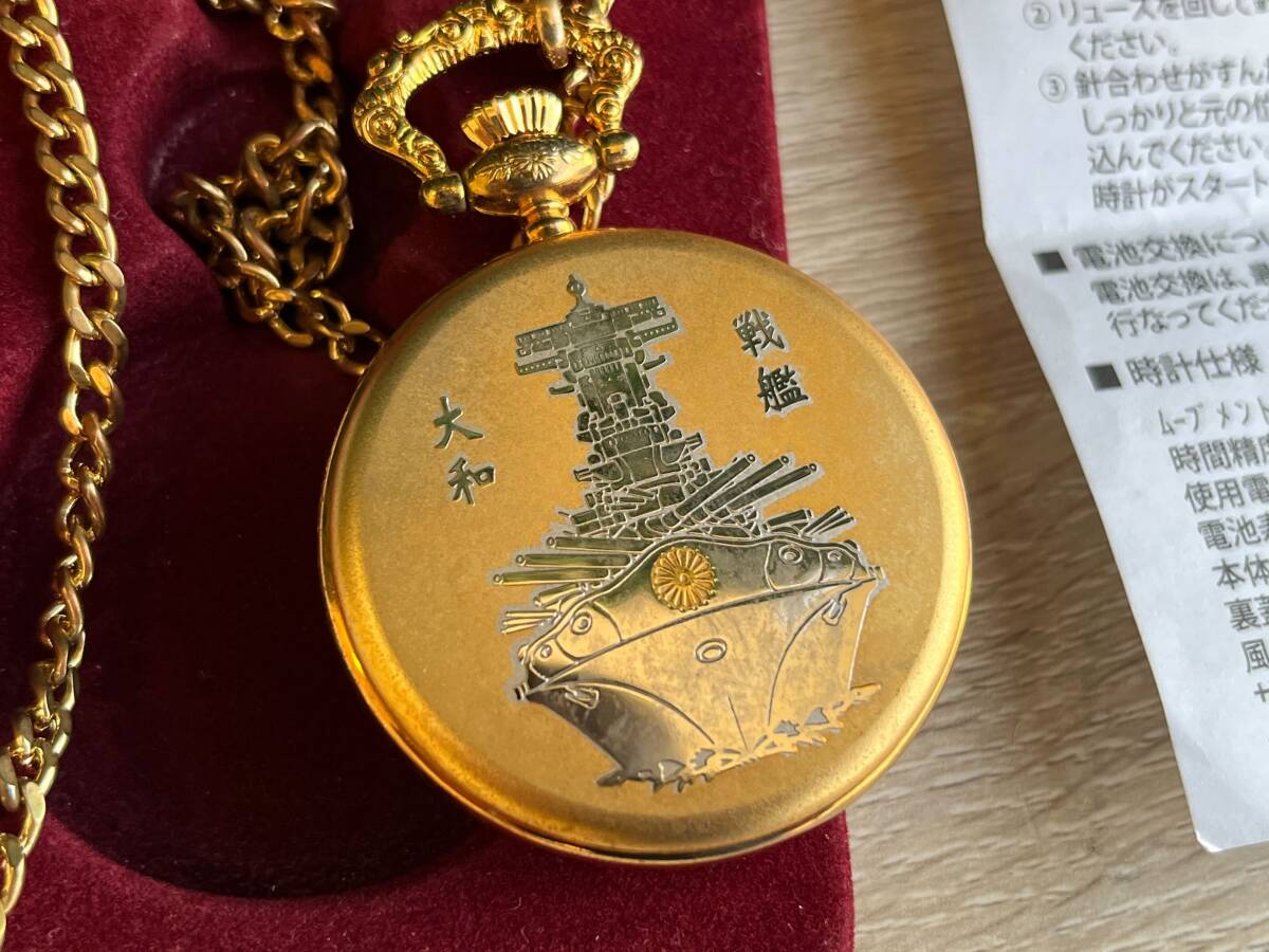 6-42【八】☆1円スタート☆ 戦艦大和 オリジナル 懐中時計 クォーツ 36S 金メッキ ゴールドカラー アンティーク