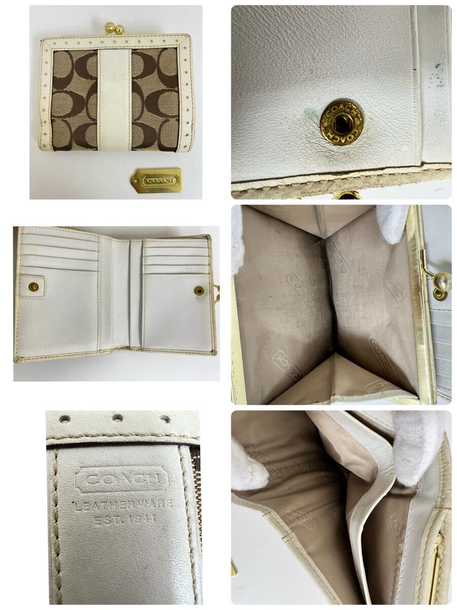 コーチ 財布 シグネチャー ブラウン ホワイトレザー