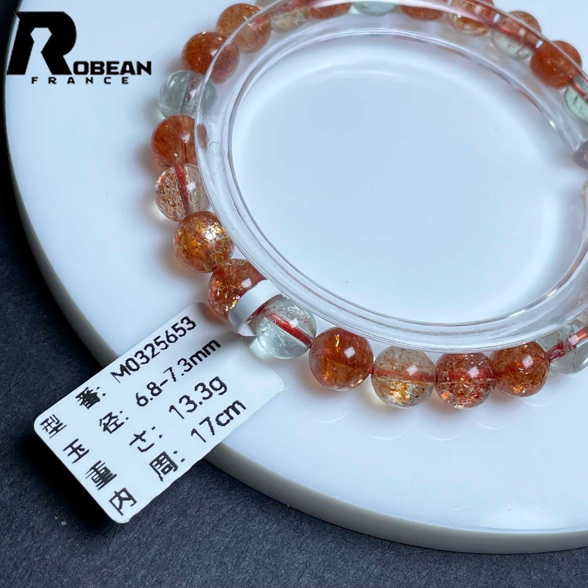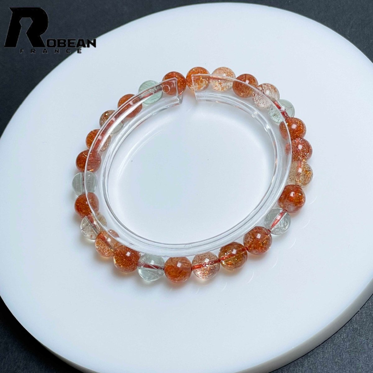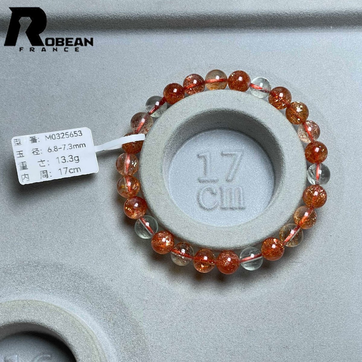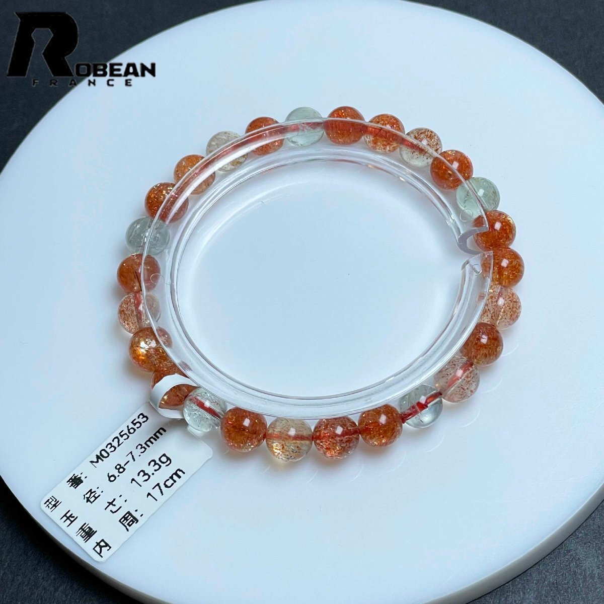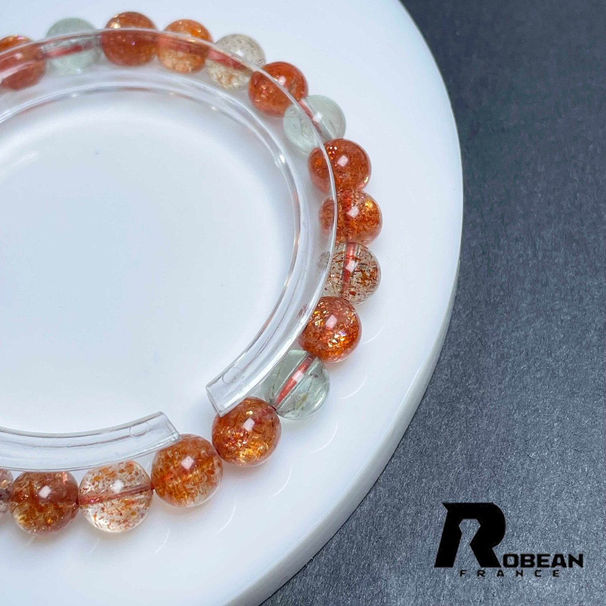 上級 EU製 定価20万円★ROBEAN・ アルーシャサンストーン★パワーストーン ブレスレット 太陽石 数珠 お守り 6.8-7.3mm M0325653