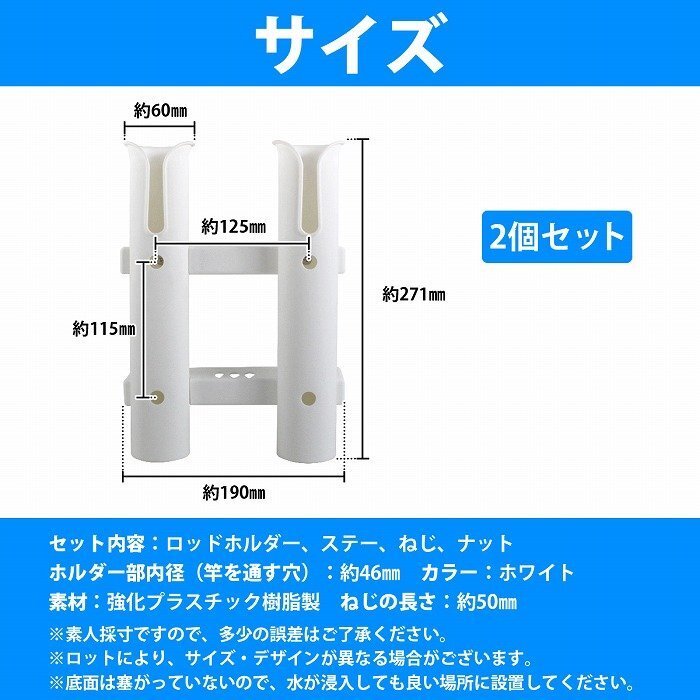 [2連 2個セット] ロッド ホルダー 竿 立て 置き 入れ 釣り フィッシング スタンド ネジ付 固定 船 漁船 ボート 白 ホワイト
