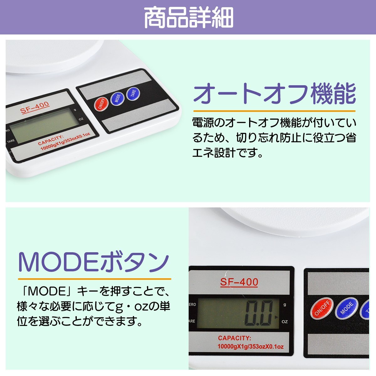 デジタルスケール キッチンスケール 10kg 1g単位 クッキングスケール 秤 計量器 電子秤 計り 料理 スイーツ デジタル