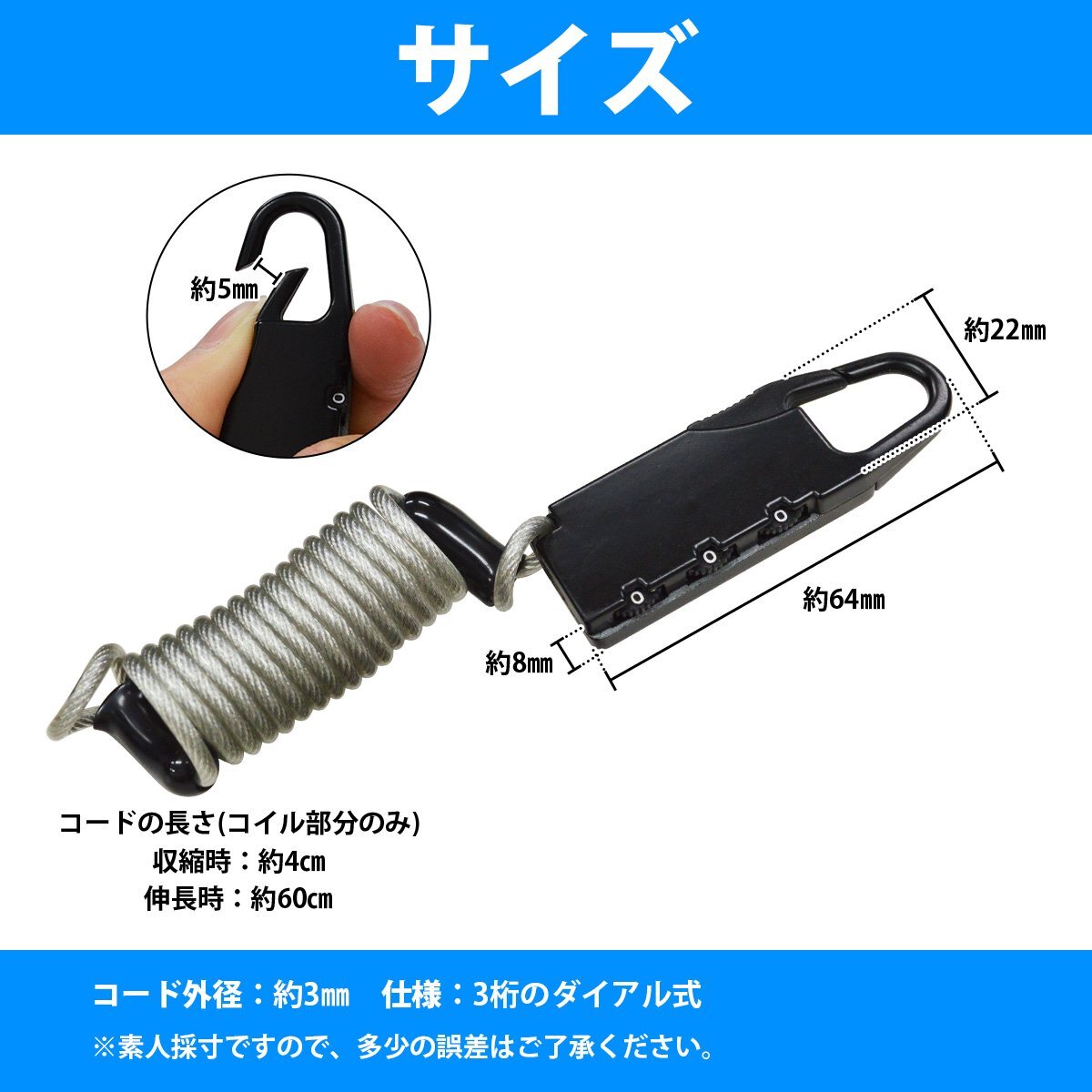 商 品 説 明盗難防止用の鍵の付いたワイヤータイプのリーシュコードです。
