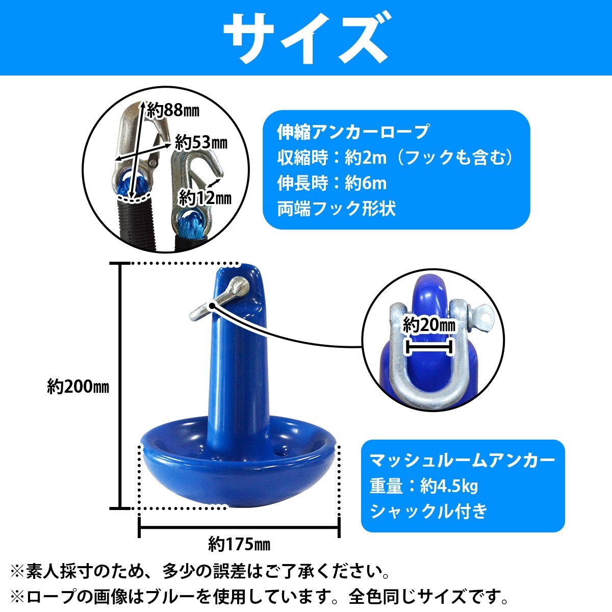 『伸縮ロープ/アンカーセット』マッシュルームアンカー 10LBS 4.5kg 青 ブルー 6M フロート のびのび アンカー ロープ 青