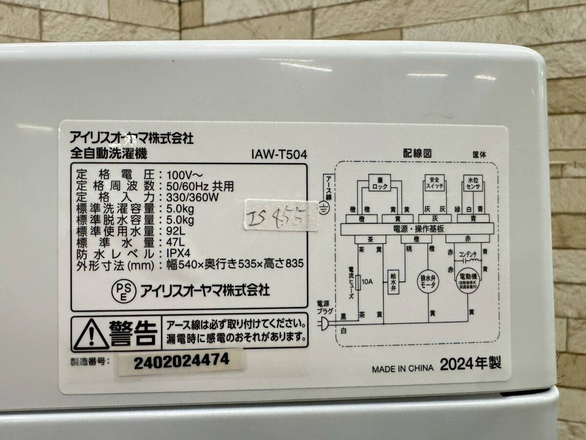 【高年式】大阪送料無料★3か月保障付き★洗濯機★アイリスオーヤマ★5kg★2024年★IAW-T504★IS-455