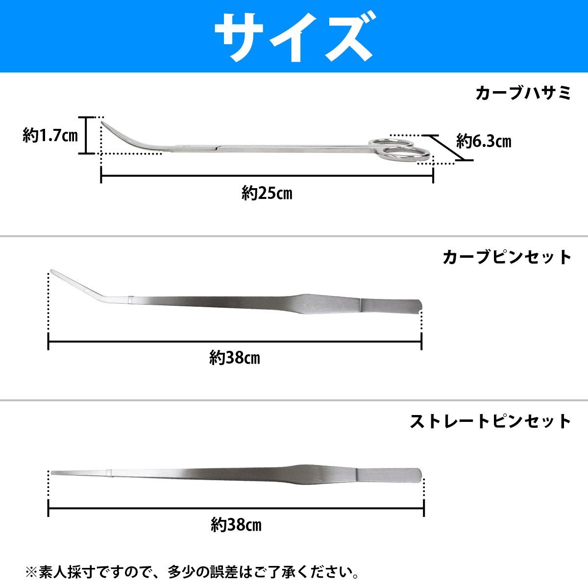 3点セット 『25cm ハサミ & 38cm ピンセット2種類 ストレート カーブ型』 水槽 水草トリミングキット