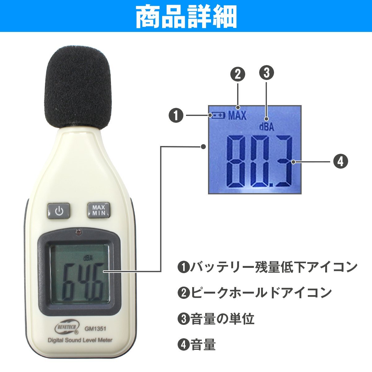 【送料250円】デジタル 騒音計 騒音 測定器 ノイズ サウンド レベル メーター 生活音 工事 学校 病院 道路 小型 防風スポンジ 音量 計測