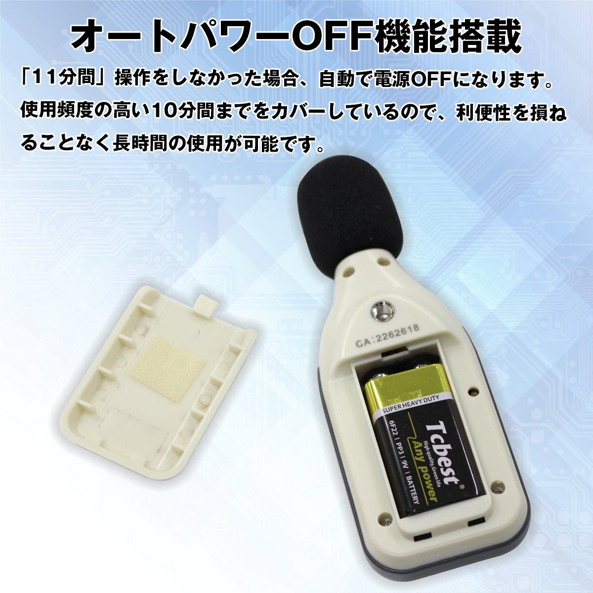 最大騒音記録機能搭載、オートパワーOFF機能付きです。