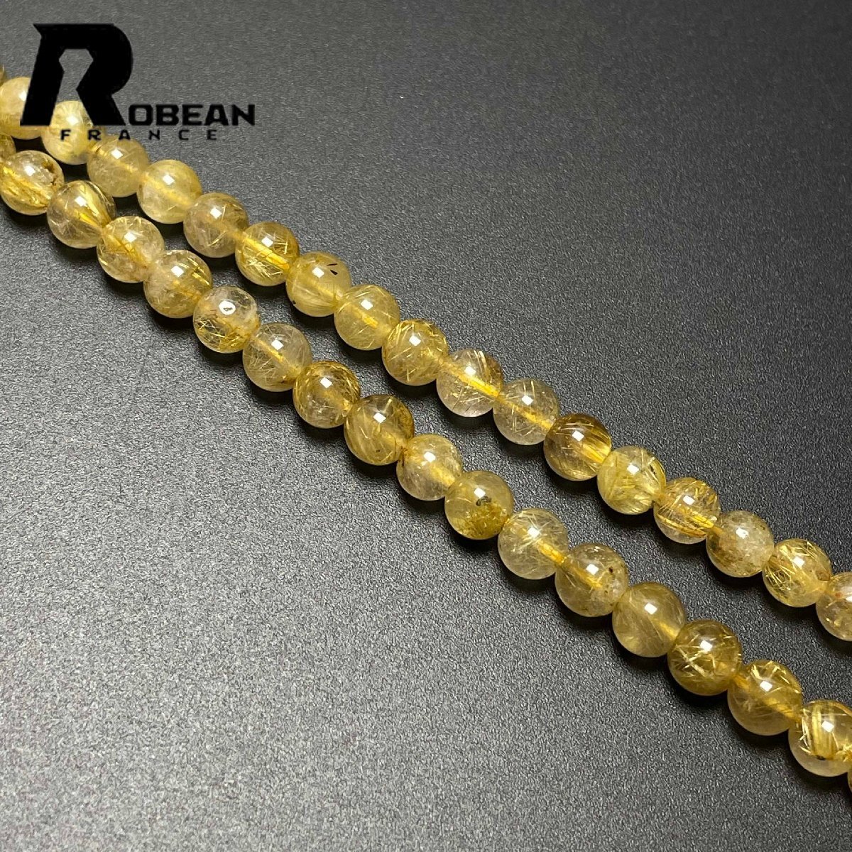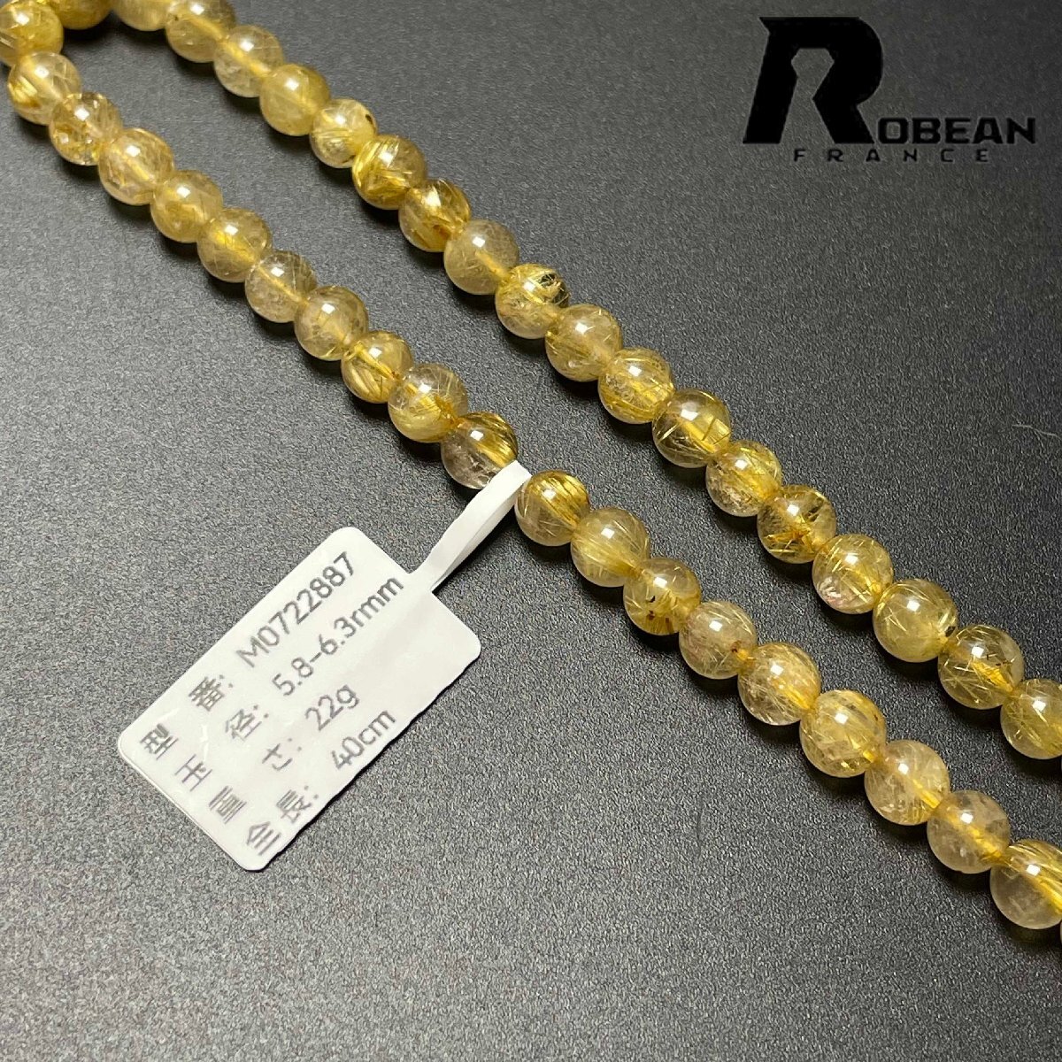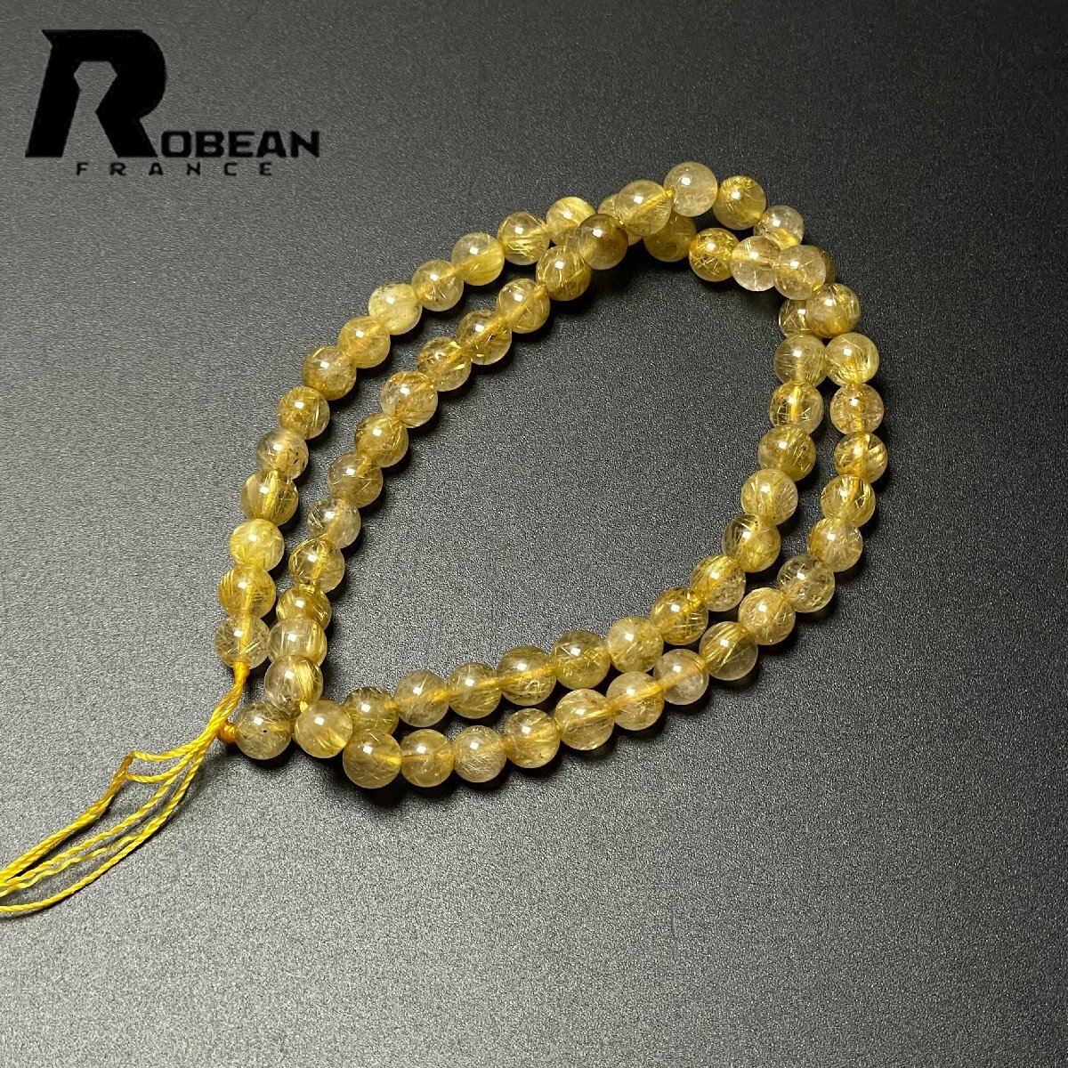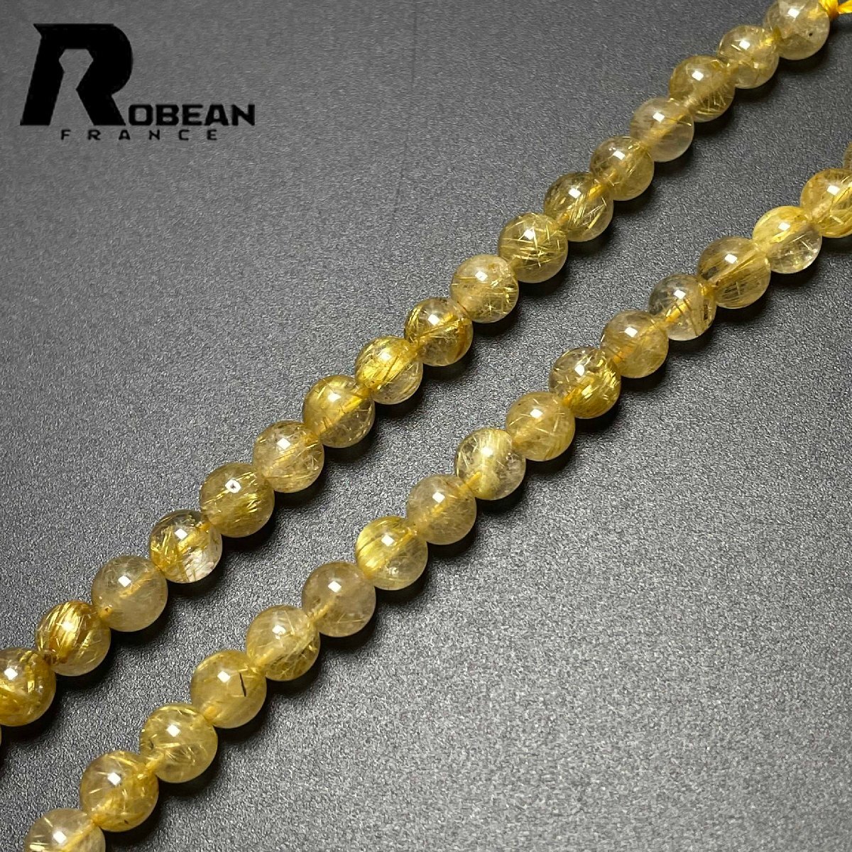 貴重 EU製 定価7万円★ROBEAN・黄金タイチンルチル★黄金針水晶 ゴールド 金運 開運 パワーストーン 1連 約5.8-6.3mm